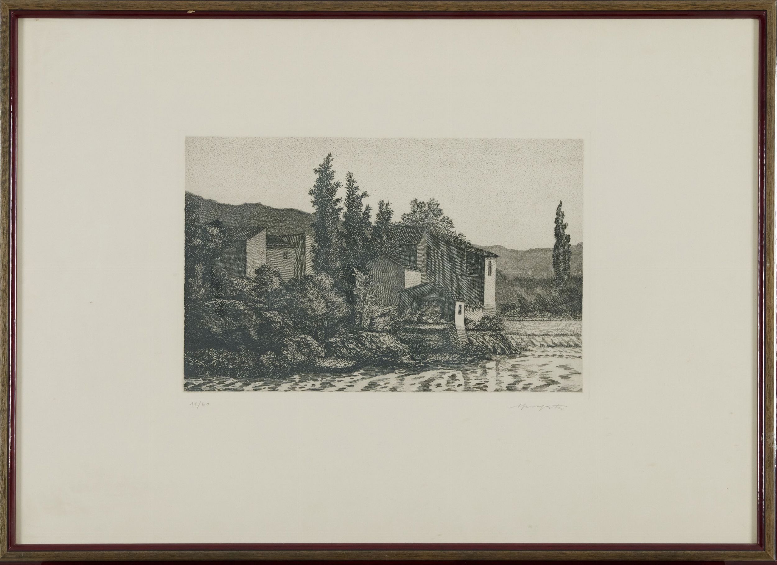 Acquaforte di cm. 25x39 su carta di, cm. 50x70