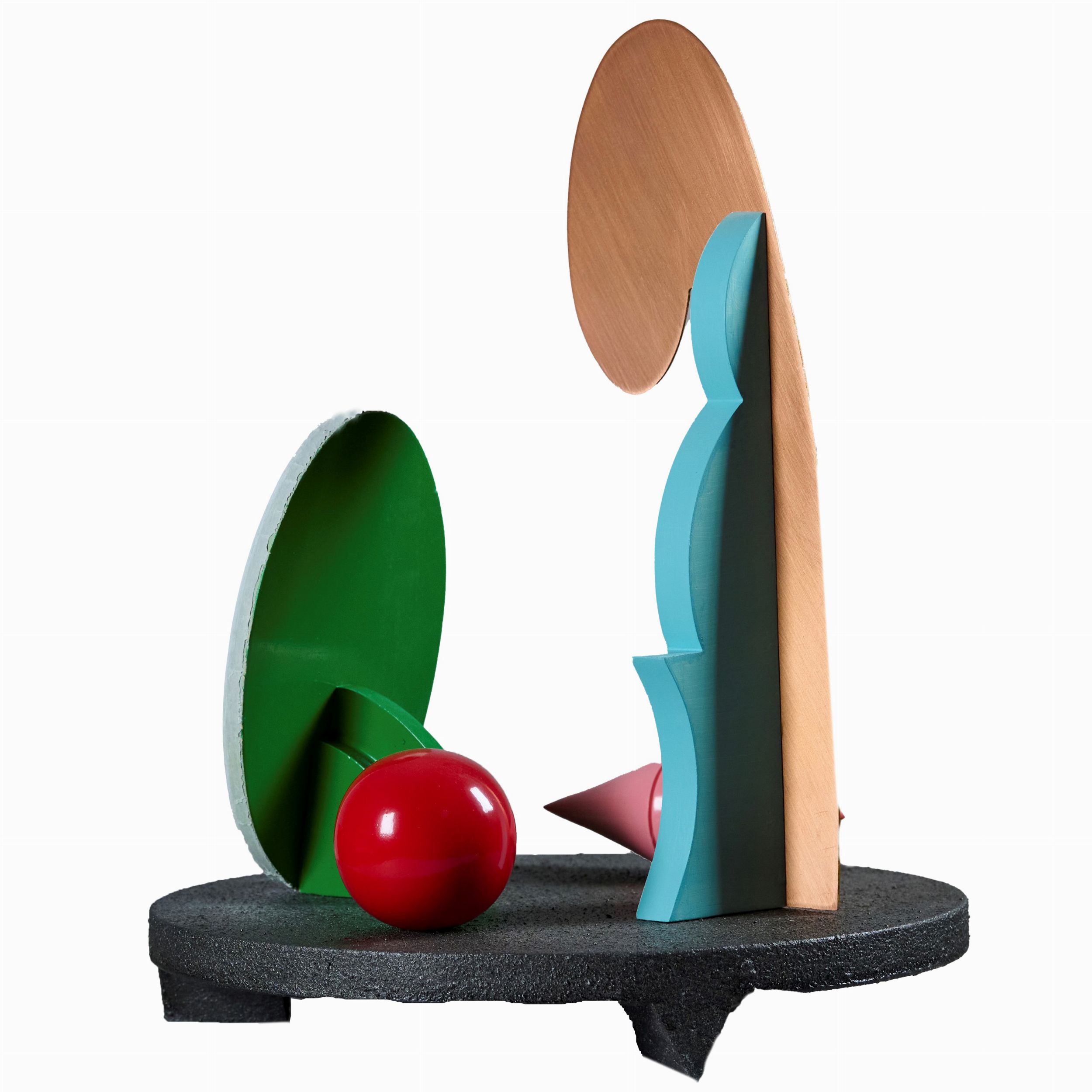 Scultura in legno e metallo dipinta in acrilico, cm. 40x32,5 es. 36/75.