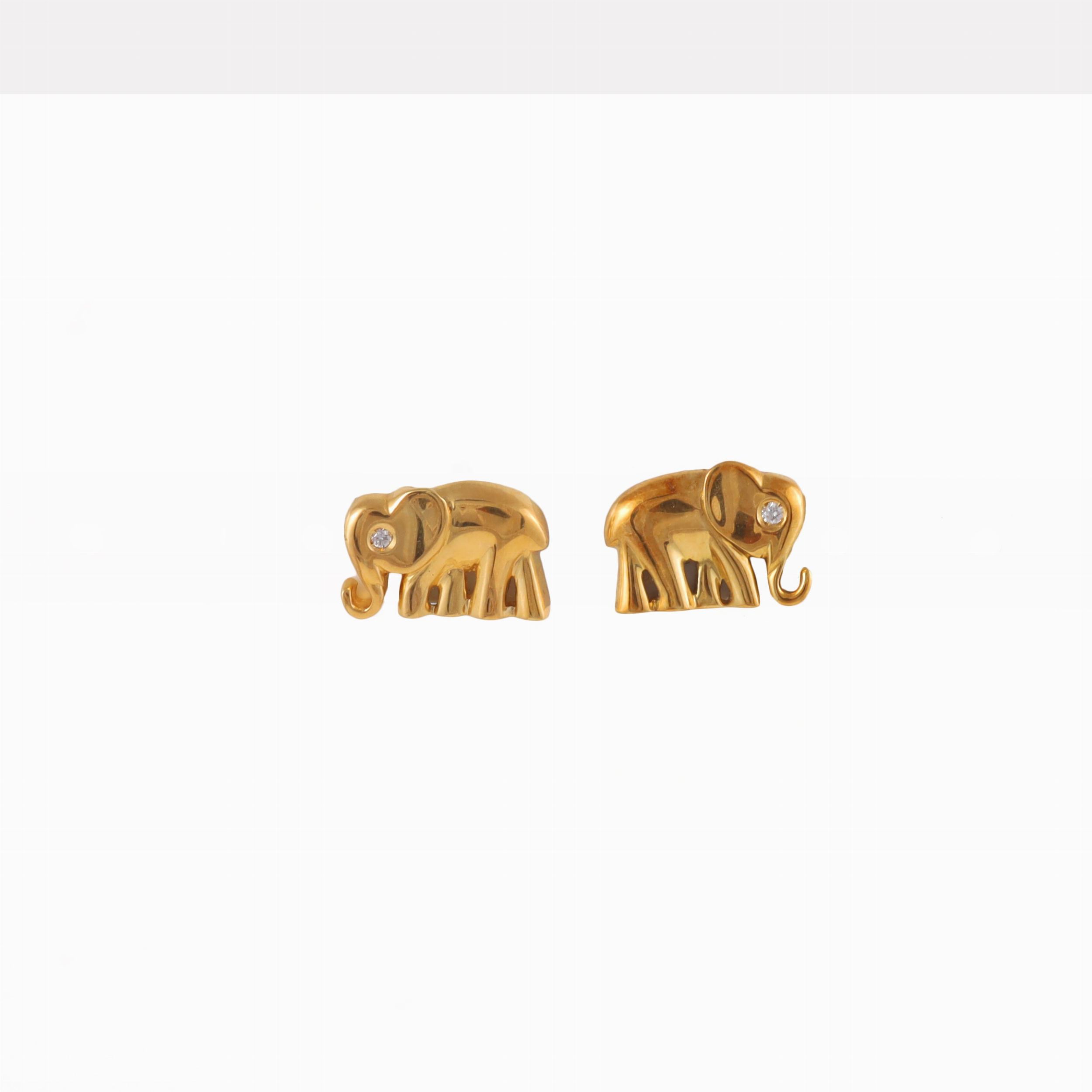 elefantini con brillanti per occhi, in oro giallo, gr. 6,7. Dimensioni 1,5 x 1 cm ca.