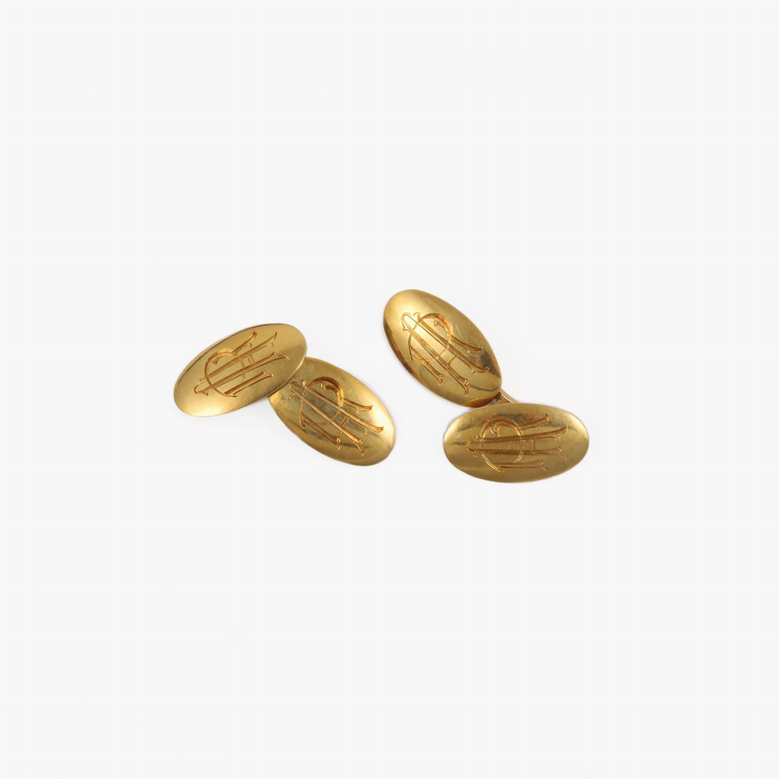ovali in oro giallo con monogramma inciso, gr. 9,7.