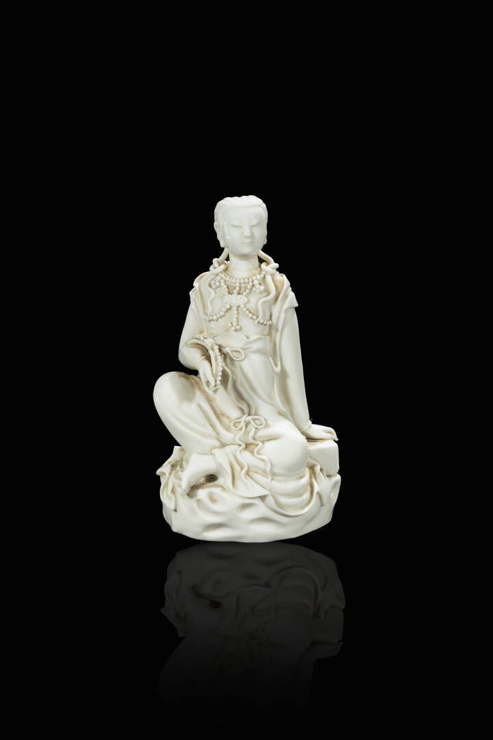 Blanc de Chine rappresentante Guanyin seduta Cina Repubblica XX sec. H cm 15x9