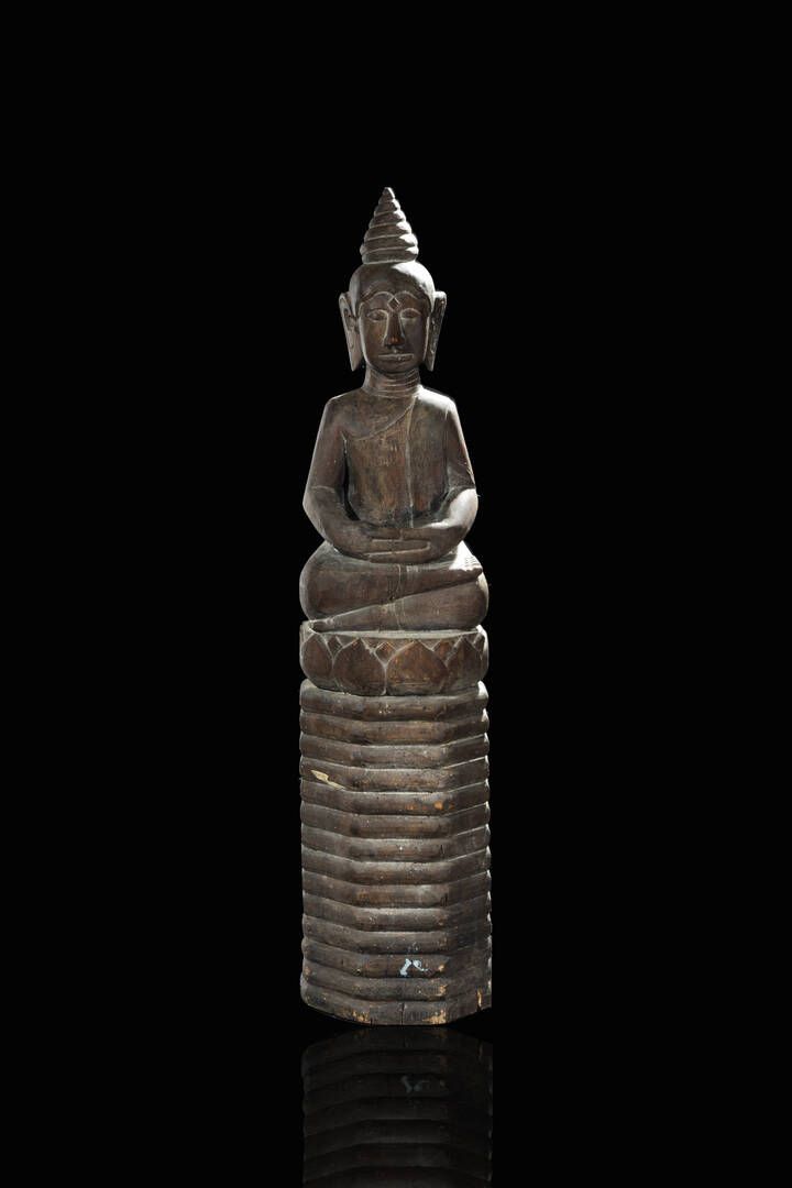 Buddha in iron wood seduto nella posizione del loto Thailandia XIX sec. H cm 70x17