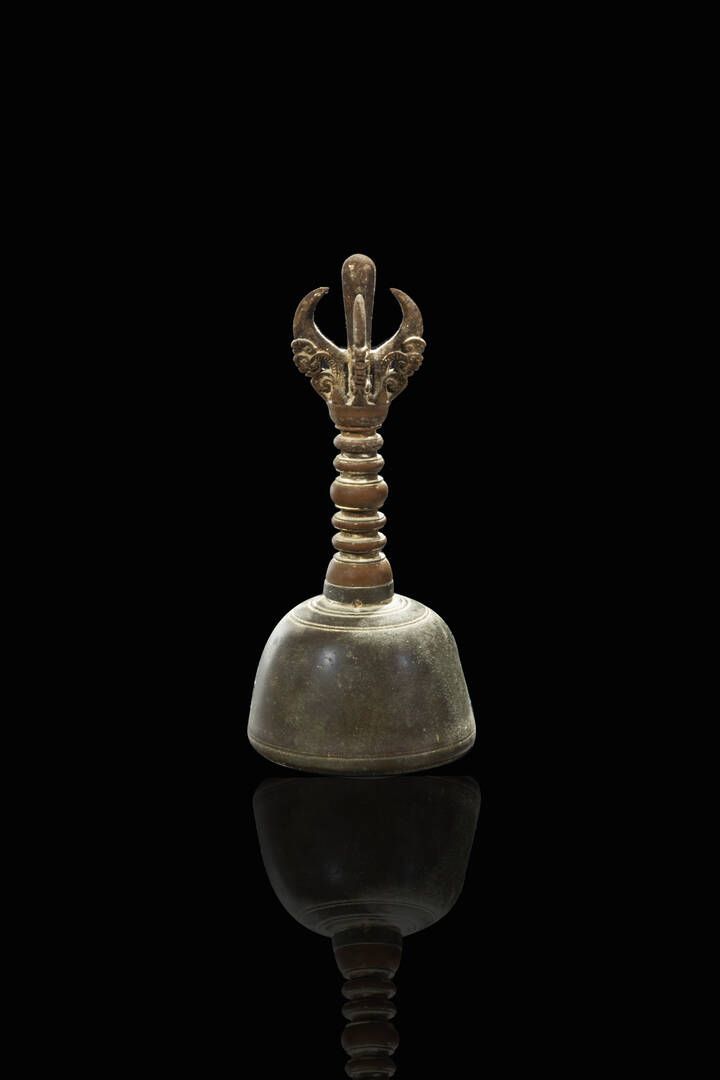 Campanella in bronzo Tibet XX sec. H cm 19 5 Diam cm 8 5