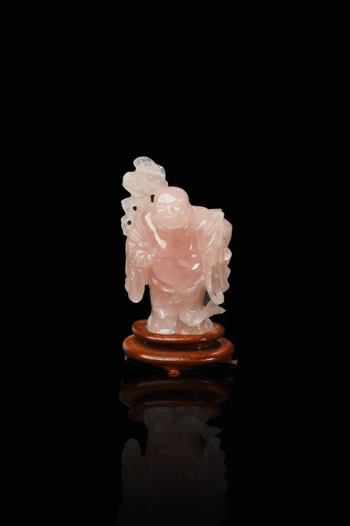 Figura di Buddha in quarzo rosa Cina Repubblica XX sec. H cm 15 (con base)