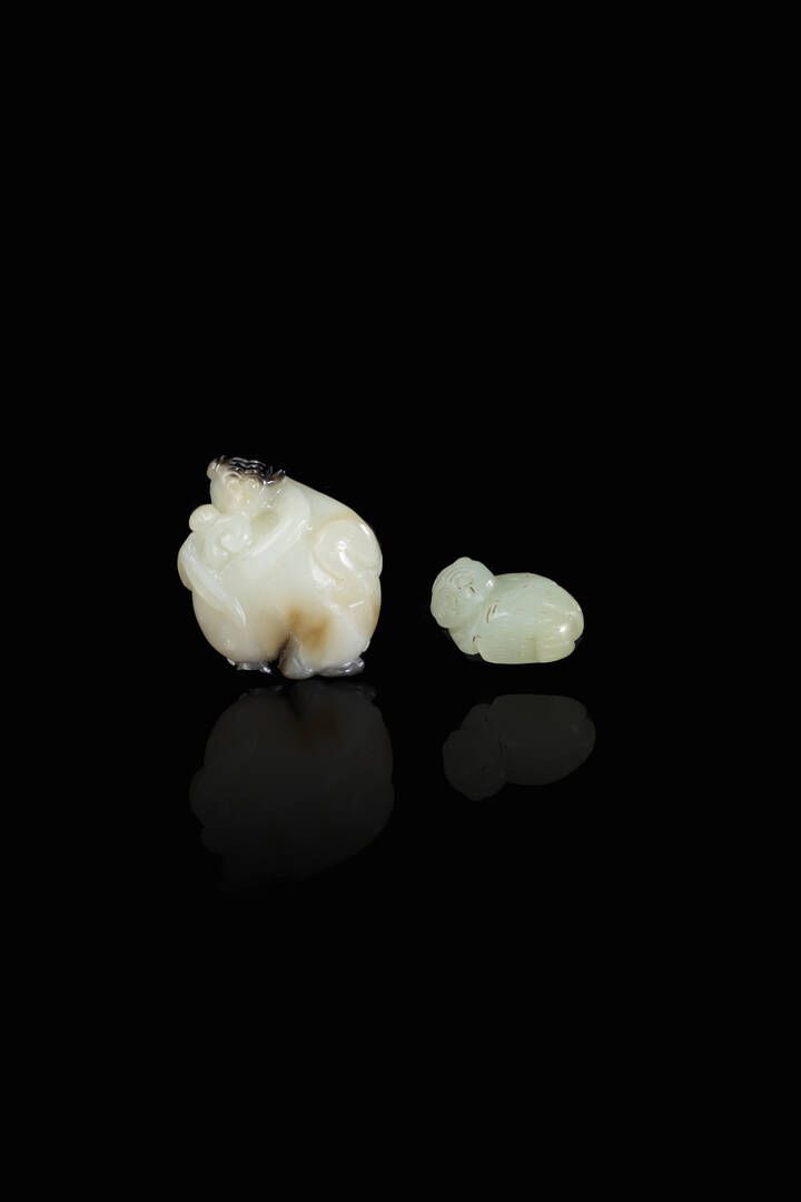 Lotto composto da due giade rappresentanti scimmie Cina dinastia Qing XIX sec. H cm 3 5x3 H cm 2x1