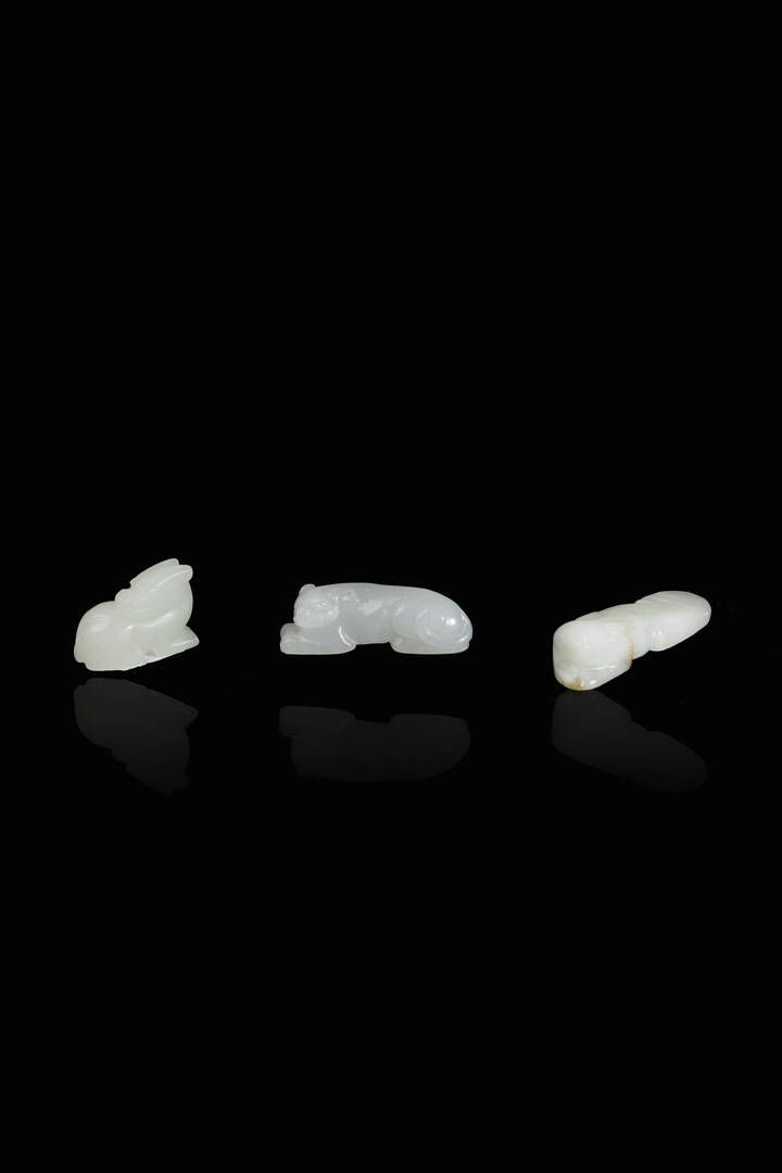 Lotto composto da tre animaletti in giada bianca cane rana e cane di Pho Cina Repubblica XX sec. H cm 4 5x1 H cm 5x1 5 H cm 2 5x1 5
