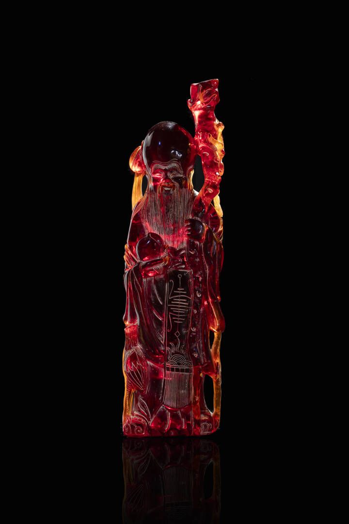 Monaco in ambra rossa Cina Repubblica XX sec. H cm 56x15 Peso gr 4834