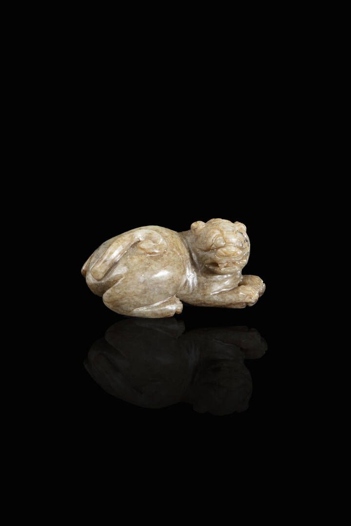 Piccola figura di cane di Pho seduto in giada rusted Cina dinastia Qing XVIII [..]