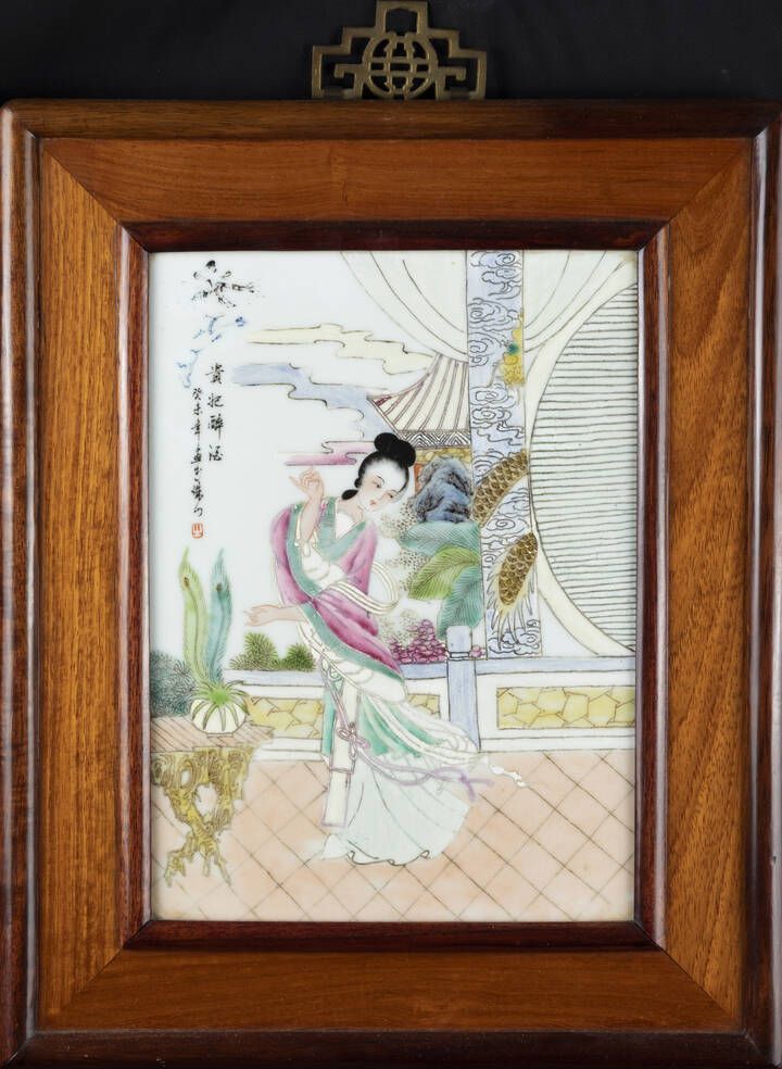 Placca in porcellana Famiglia Rosa Cina Repubblica XX sec. H cm 34x22