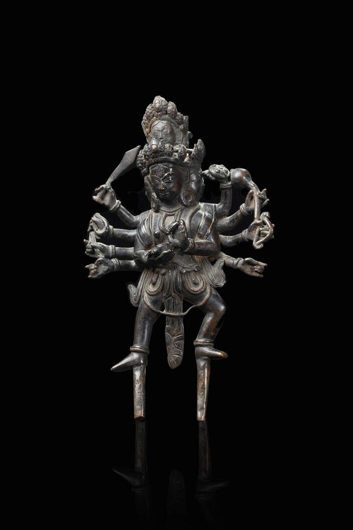 Scultura di Buddha Amitabha in bronzo patinato Cina dinastia Ming XVII sec H cm 23x14