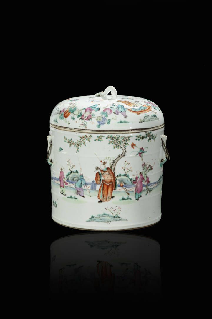 Vivandiere in porcellana Famiglia Rosa dipinta con fanciulli in festa Cina dinastia Qing XIX Sec. H cm 22 Diam cm 18
