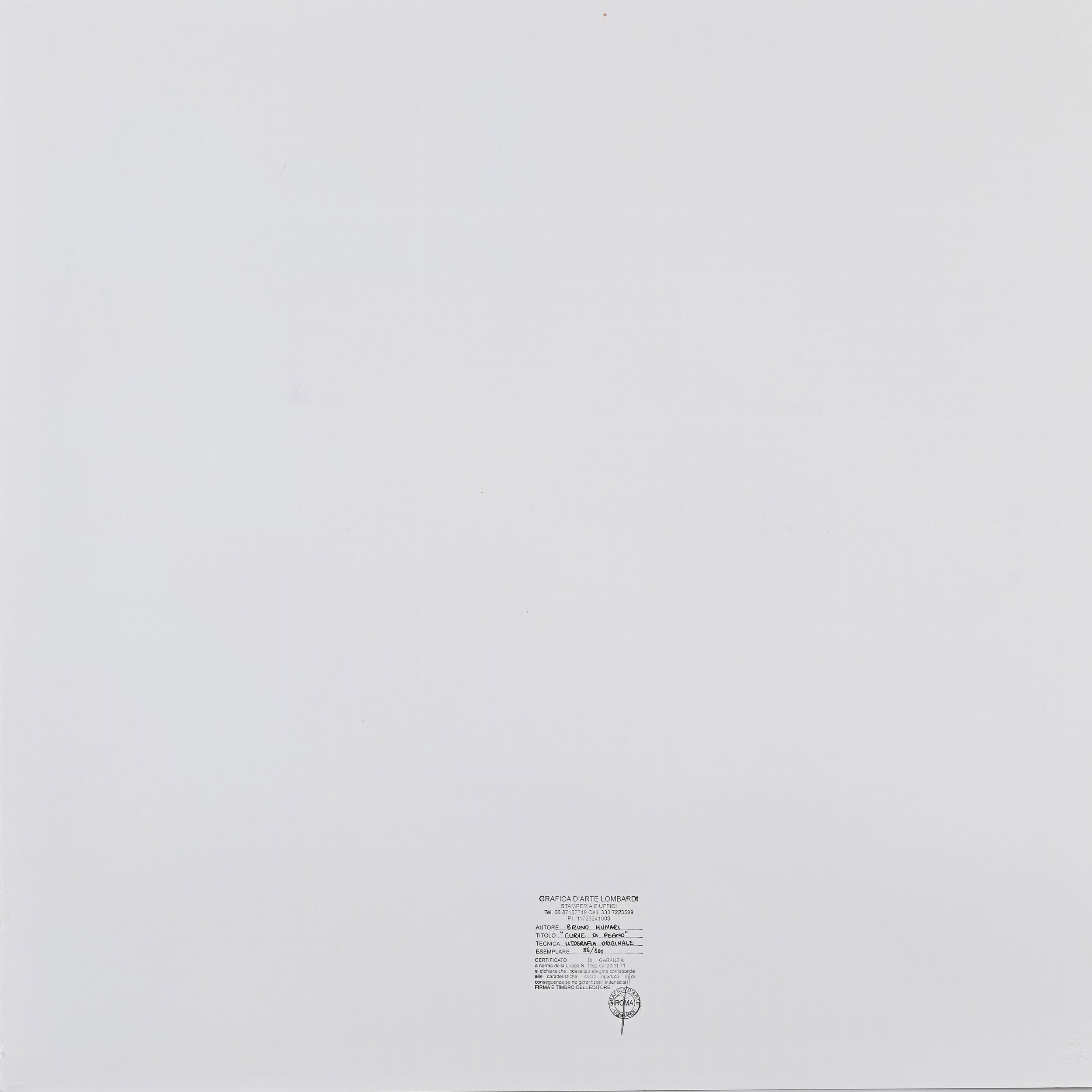 Firma e numerazione Munari 86/100. Timbro a secco dello stampatore. Al verso timbro della Grafica d'Arte Lombardi