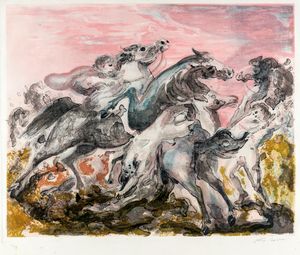 Acquaforte/acquatinta, cm 69,5x99 Firma e numerazione Accardi 86/100. Timbro a secco dello stampatore. Al verso [..]