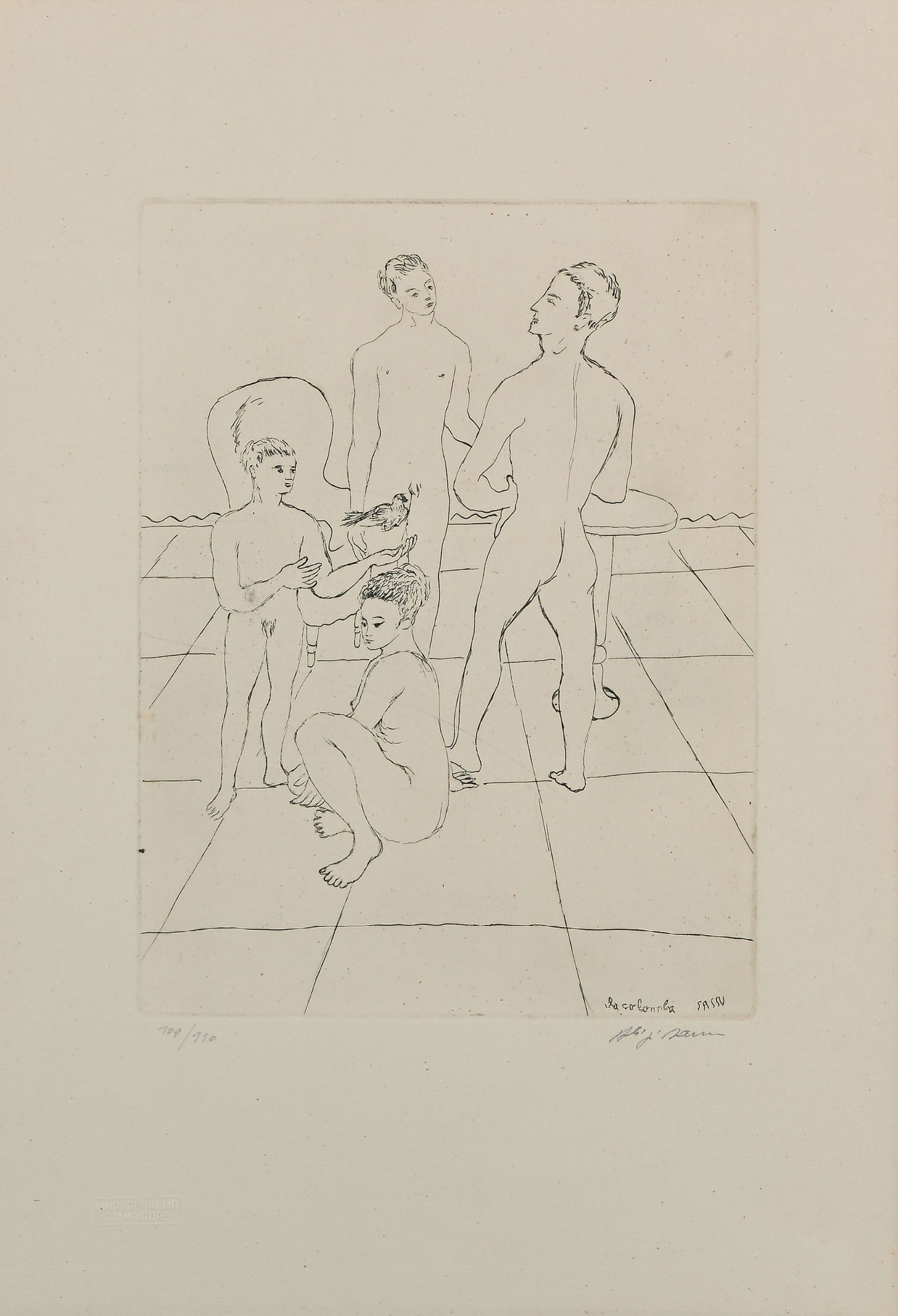 Firma e numerazione Aligi Sassu, 109/110. Titolo e firma in lastra. Timbro a secco dello stampatore.
