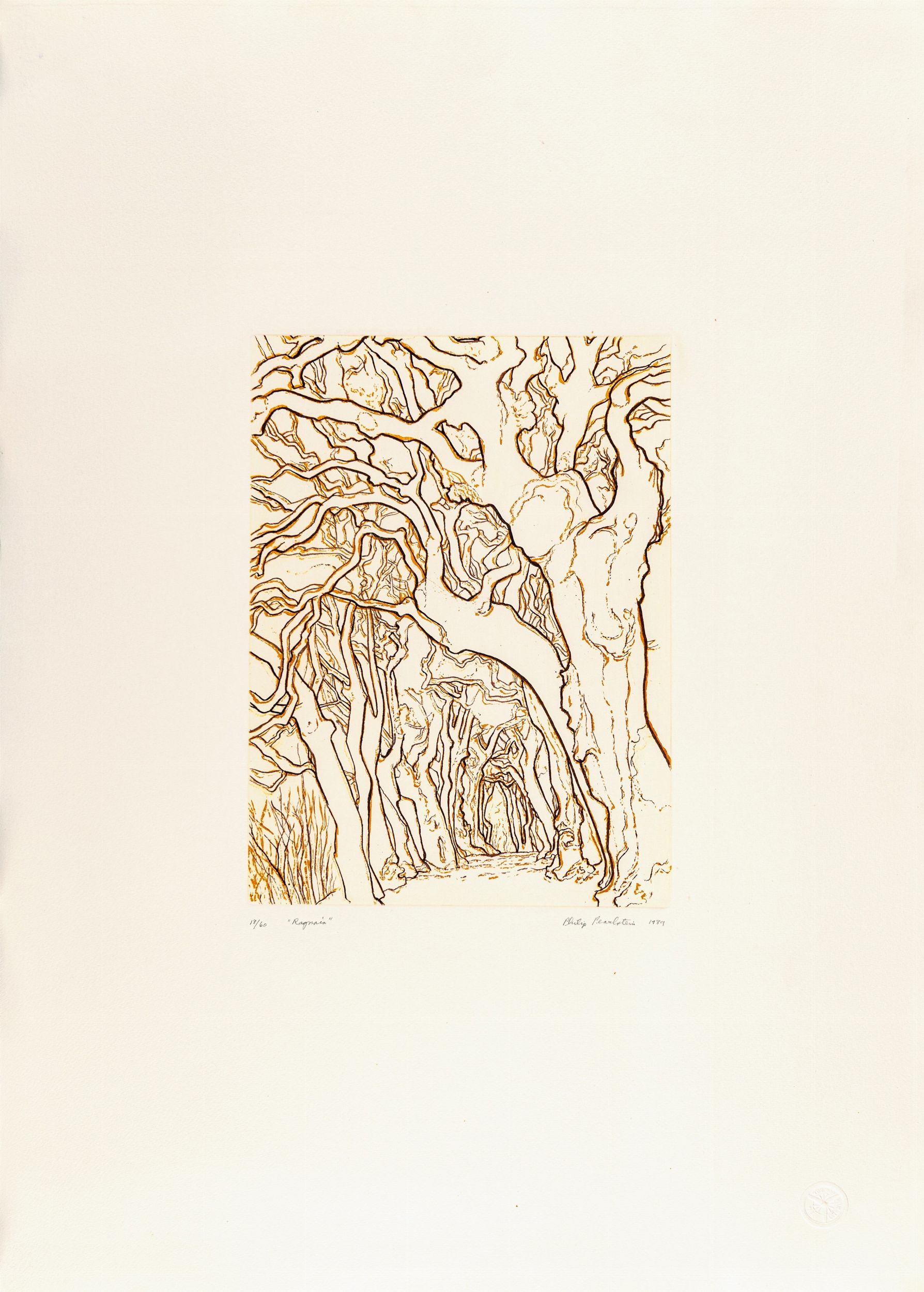 1989 Firma, data, titolo e numerazione. Esemplare 18/60. Timbro a secco ed etichetta dello stampatore Il Torchio Romano