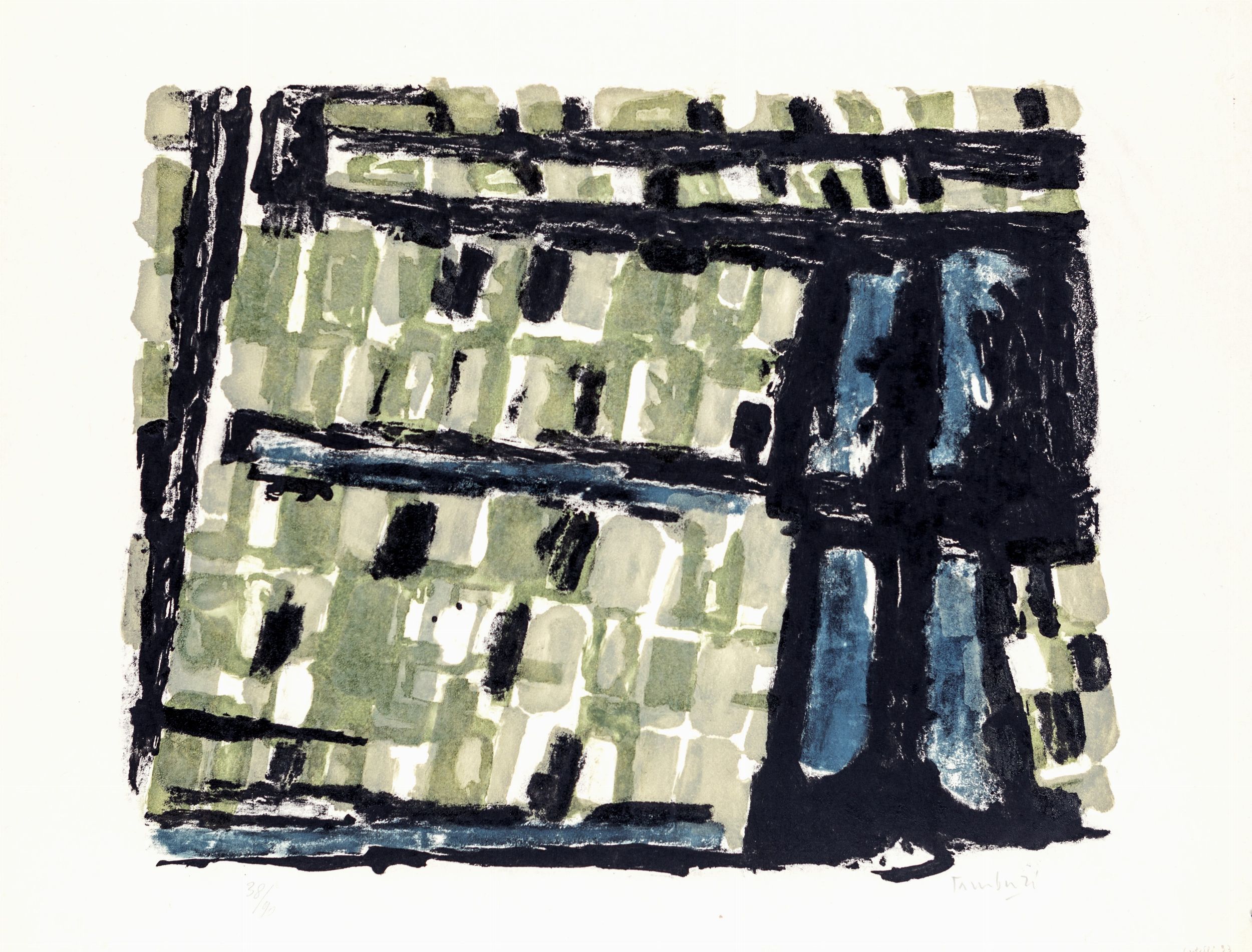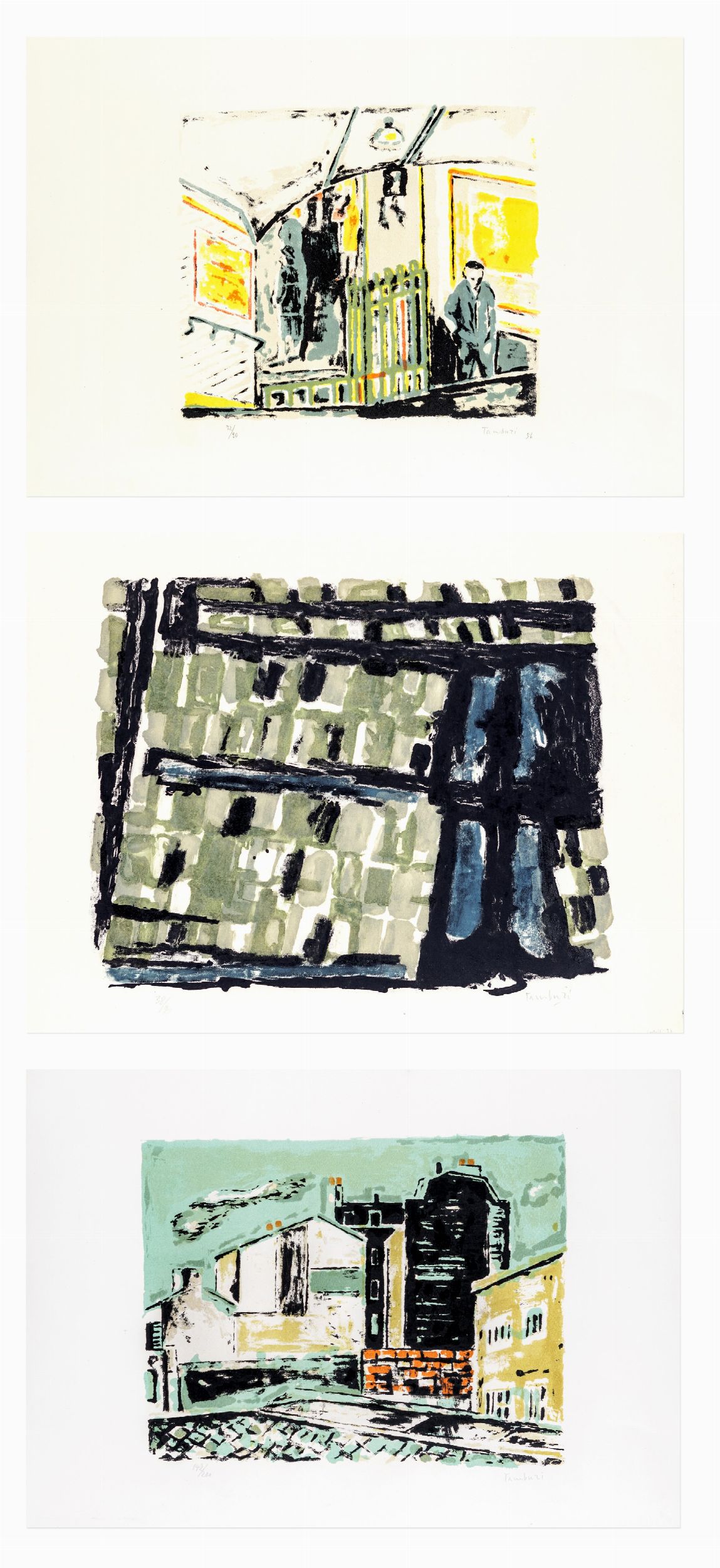 c) Senza titolo, 1956, Litografia, cm 48x66. Firma data e numerazione Tamburi 72/90.