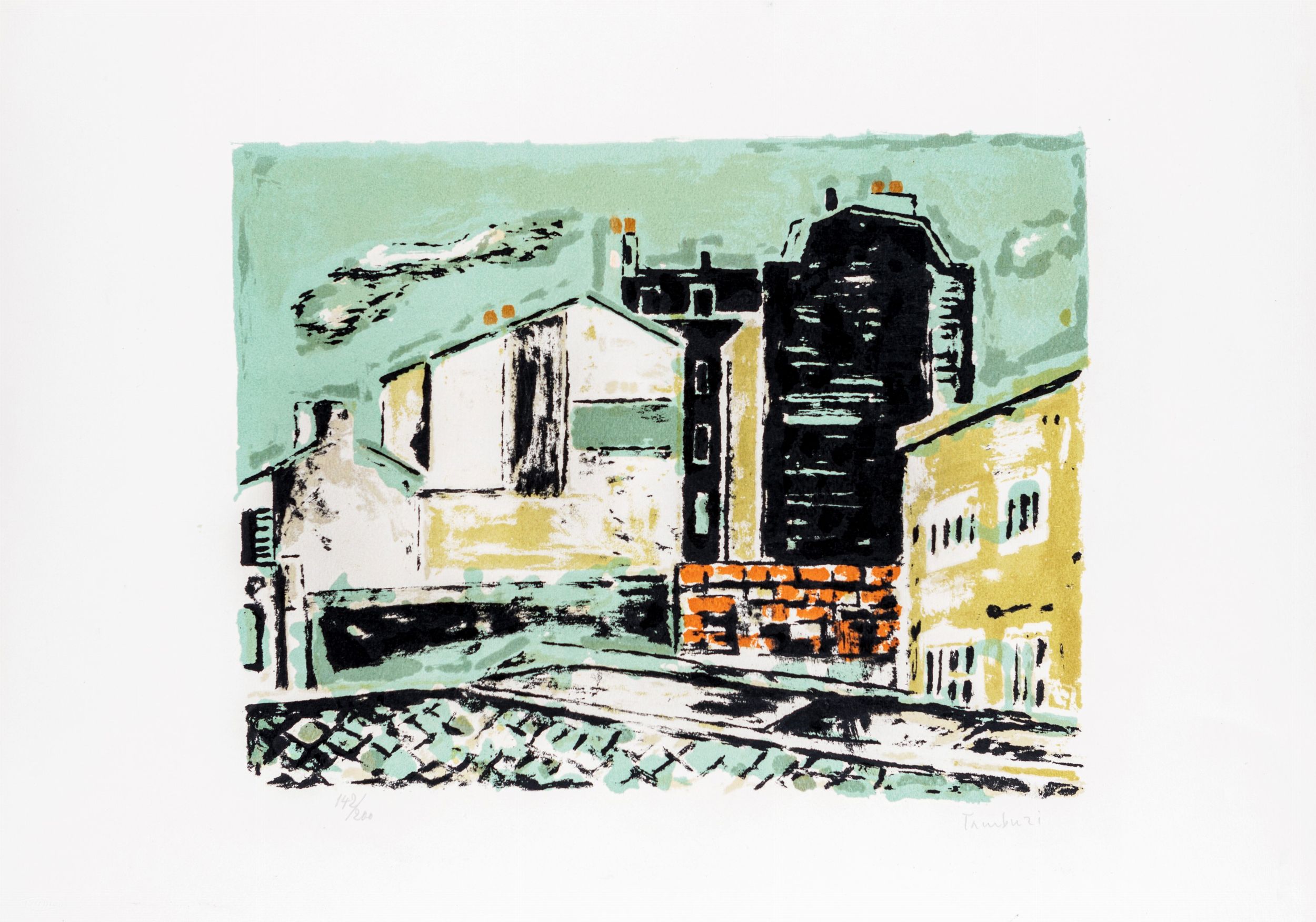 a) Parigi, Litografia, cm 49x67. Firma e numerazione Tamburi 142/200.