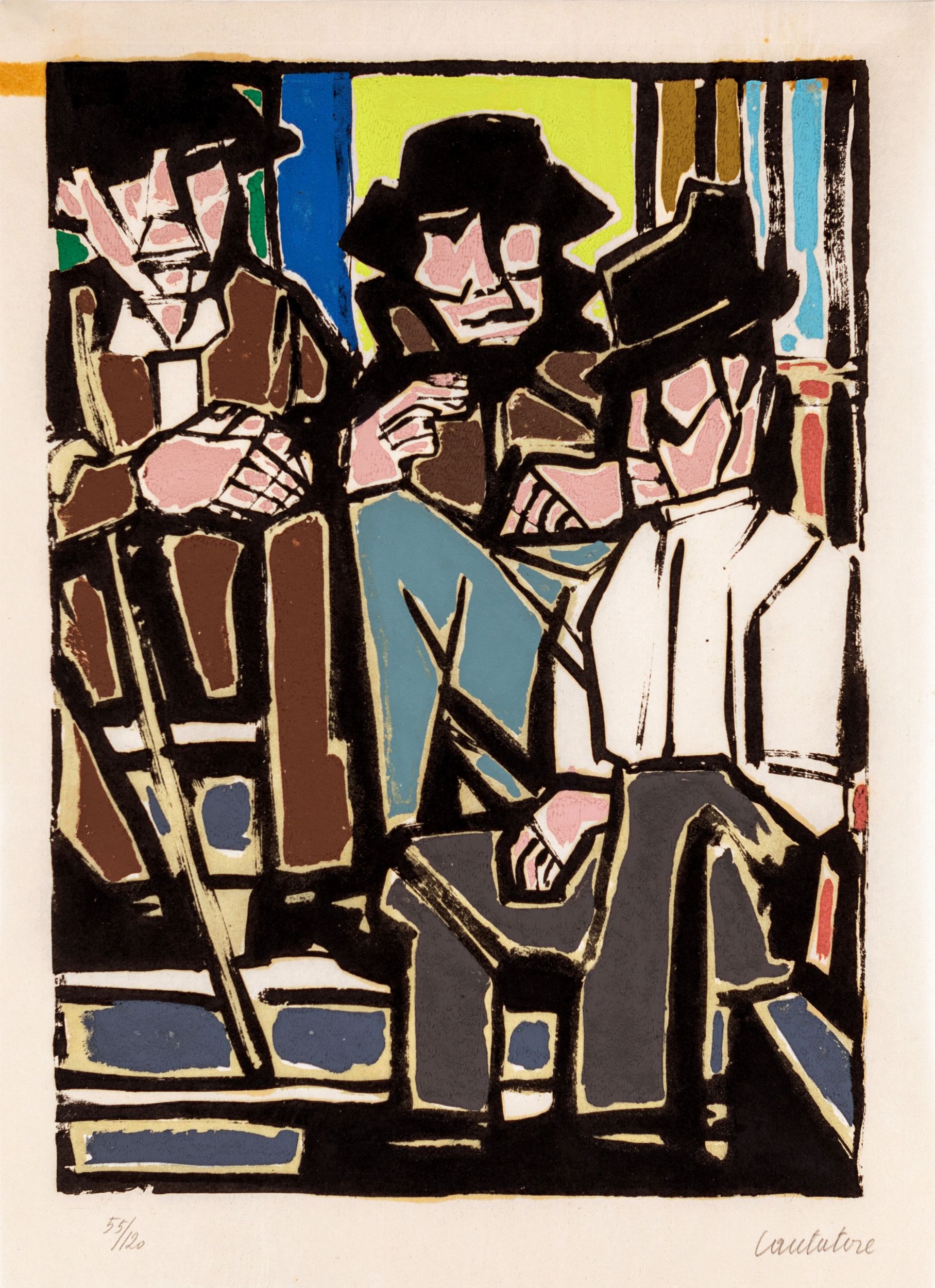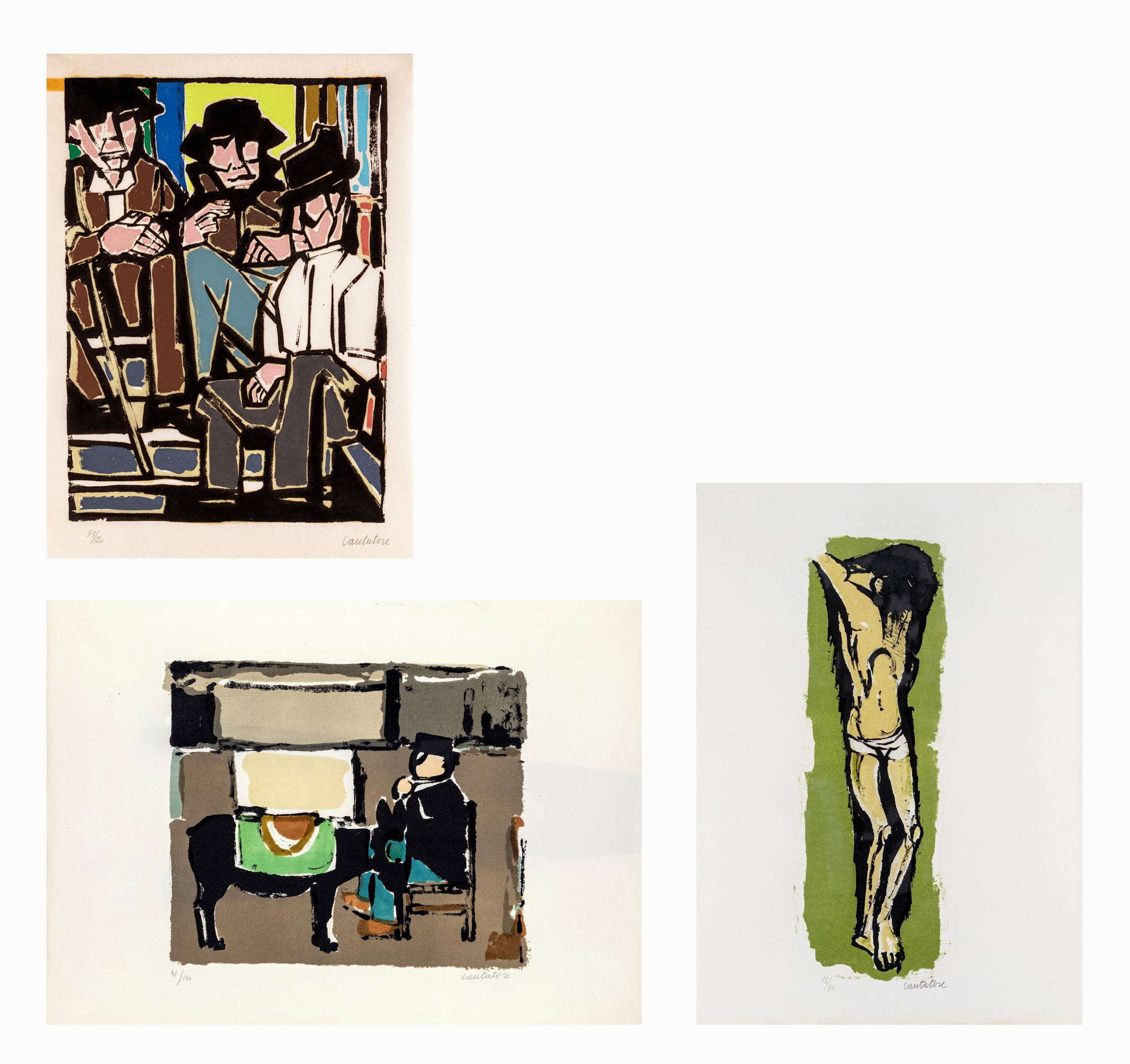 a) Bevitori, Litografia, cm 55x39, Firma e numerazione Cantatore, 55/120b) Crocifissione, Litografia, cm 67x49, Firma e numerazione Cantatore 15/90c) Senza titolo, Litografia, cm 48x67, Firma e numerazione Cantatore 41/150