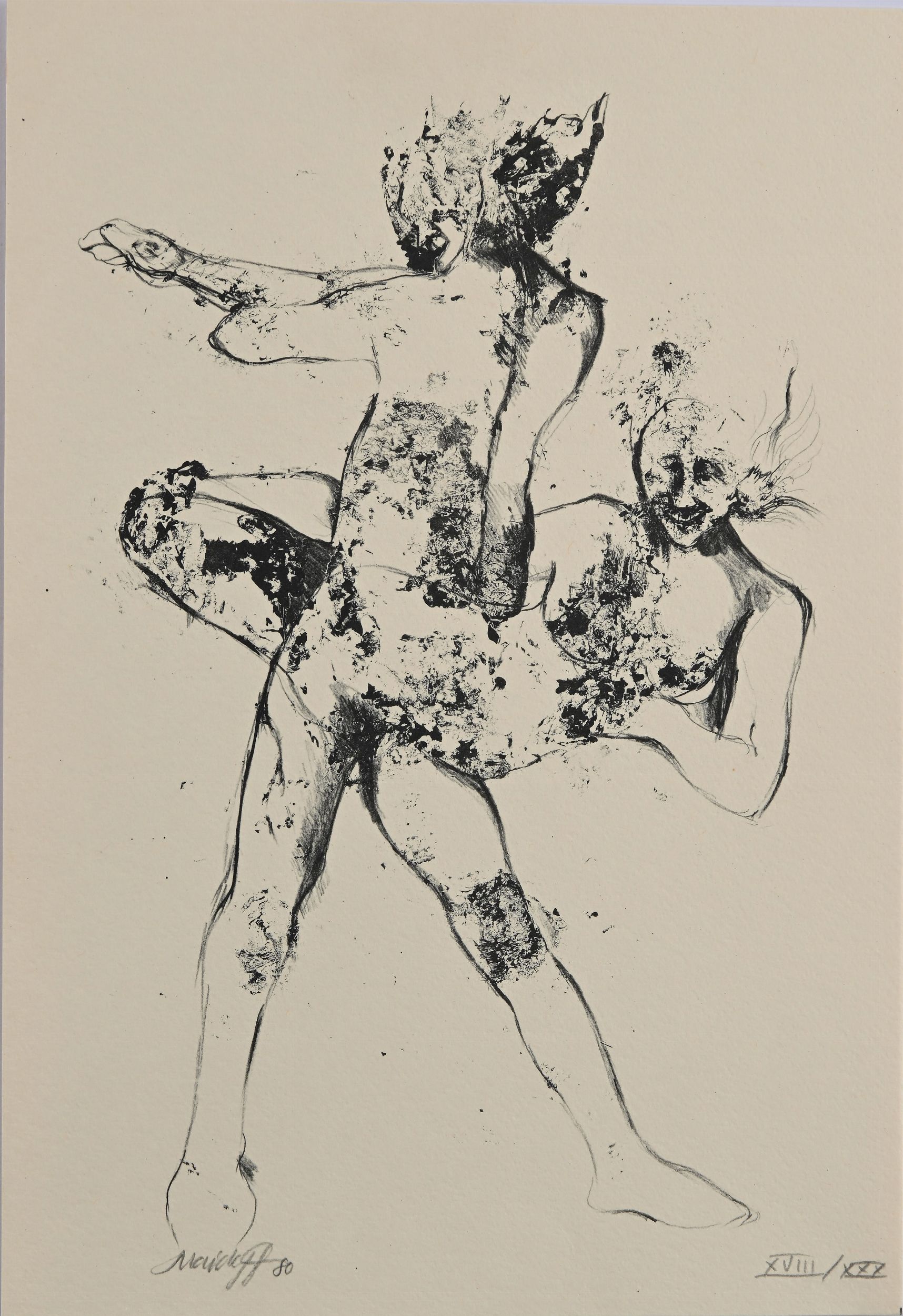 B) Amanti, litografia, 1980. Firma e numerazione Maidoff '80 XVIII/XXX - cm 32x22