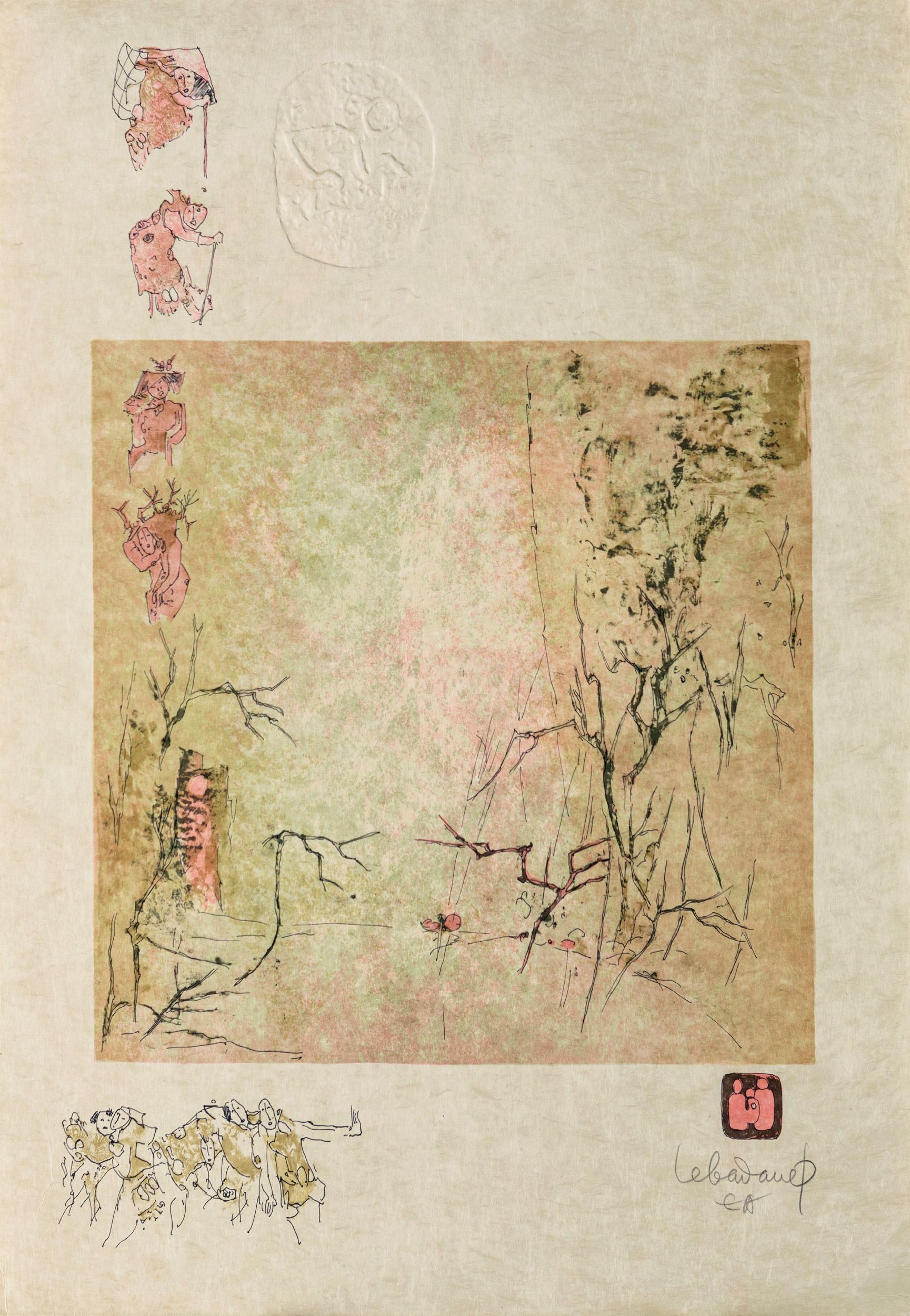 d)Senza titolo, acquaforte, cm 70x50, firma e numerazione Lebadang Epreuve d'artiste.