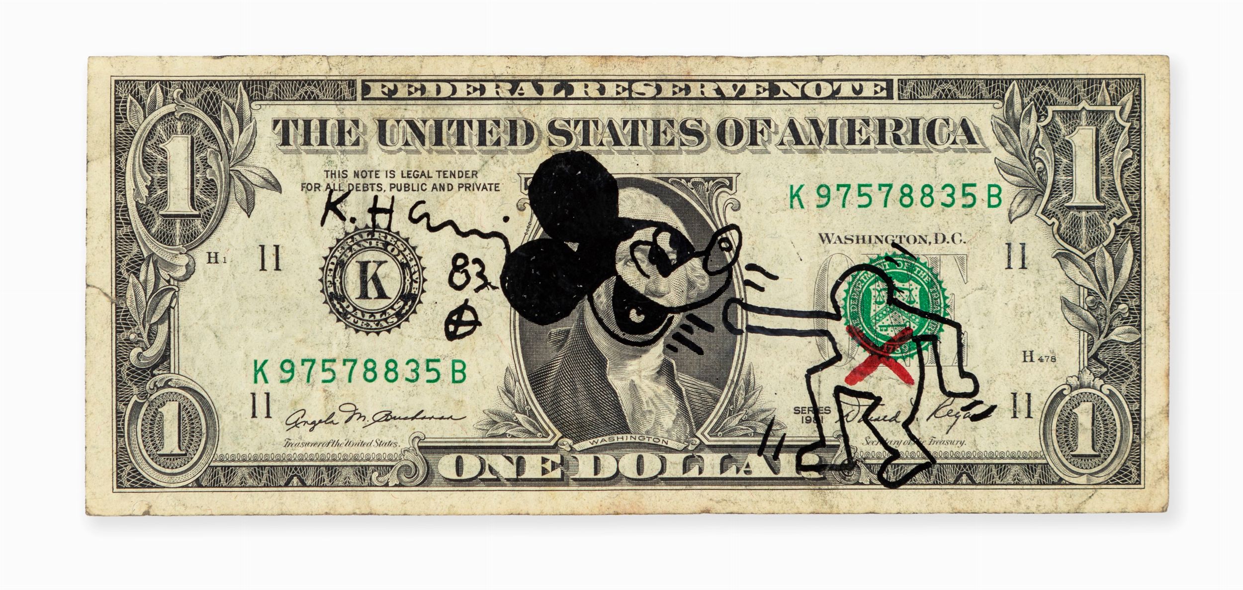 Pennarelli su dollaro, cm 6,5x15 - entro teca di plexiglass cm 13x18
