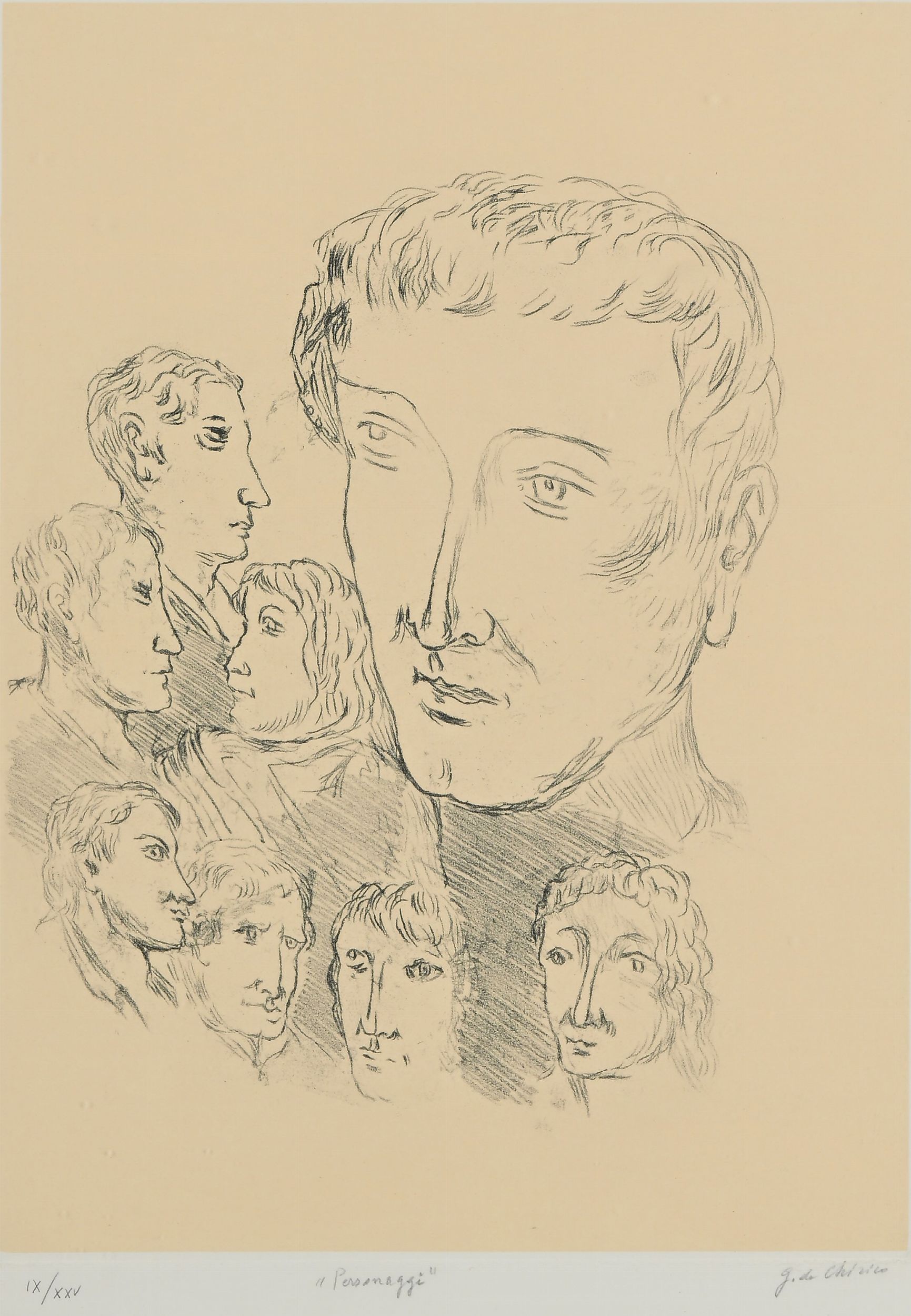 Titolo, firma e numerazione G. De Chirico, IX/XXV. Timbri a secco di Caprini e G. De Chirico