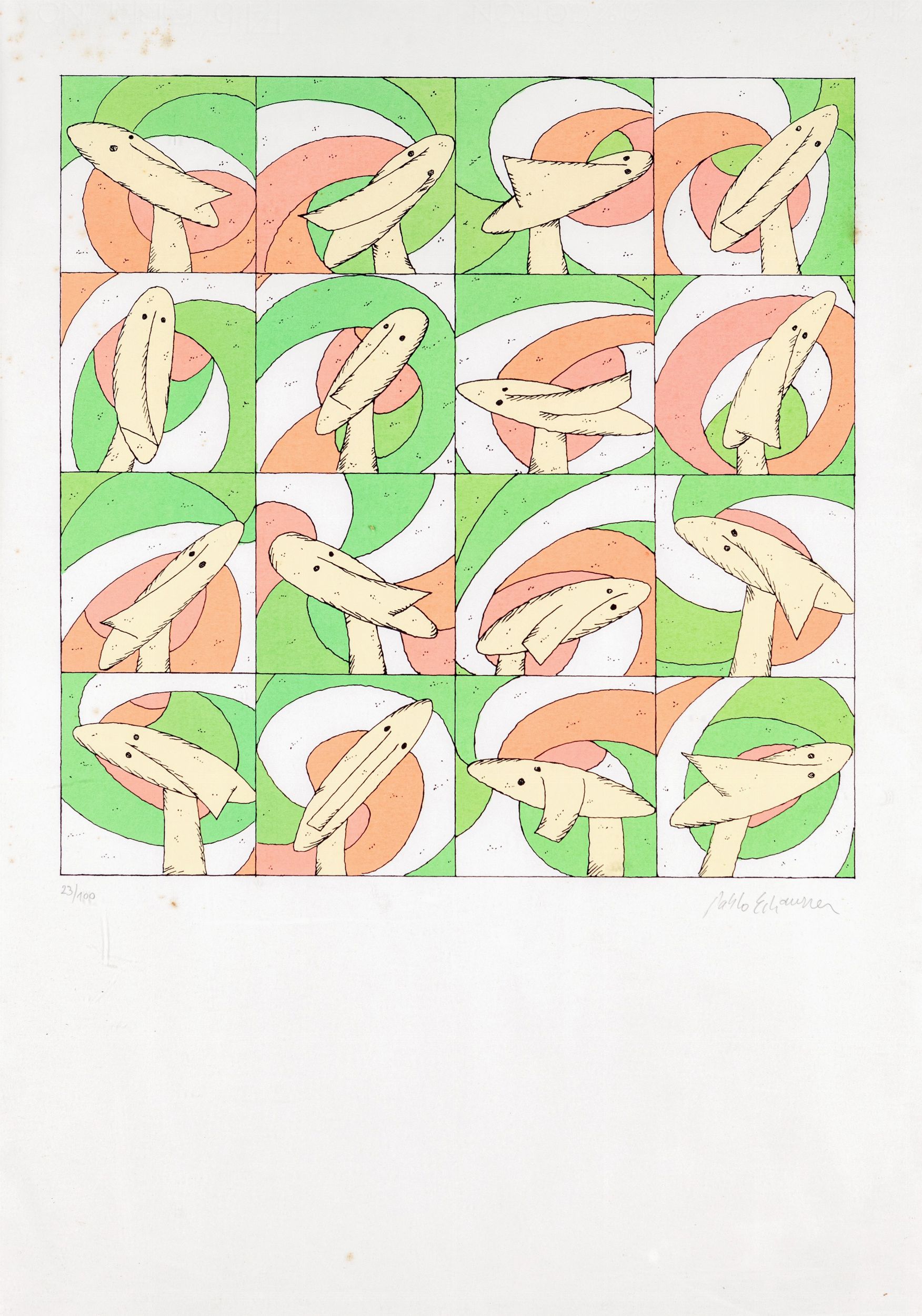 Firma e numerazione Pablo Echaurren 23/100. Al verso etichetta di Telemarket