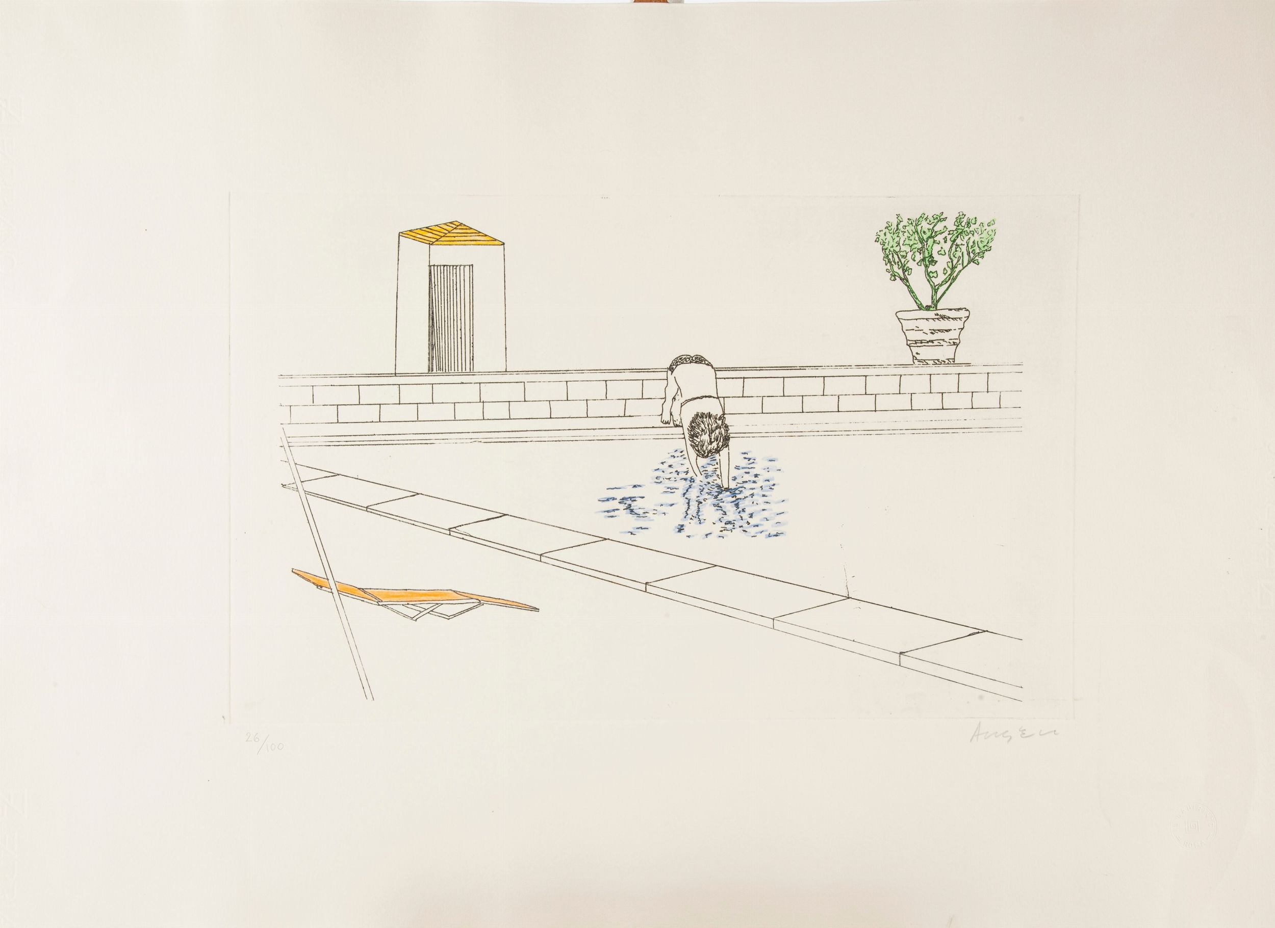 Firma e numerazione Angeli 26/100. Timbro a secco in basso a sinistra Il Labirinto, Roma.