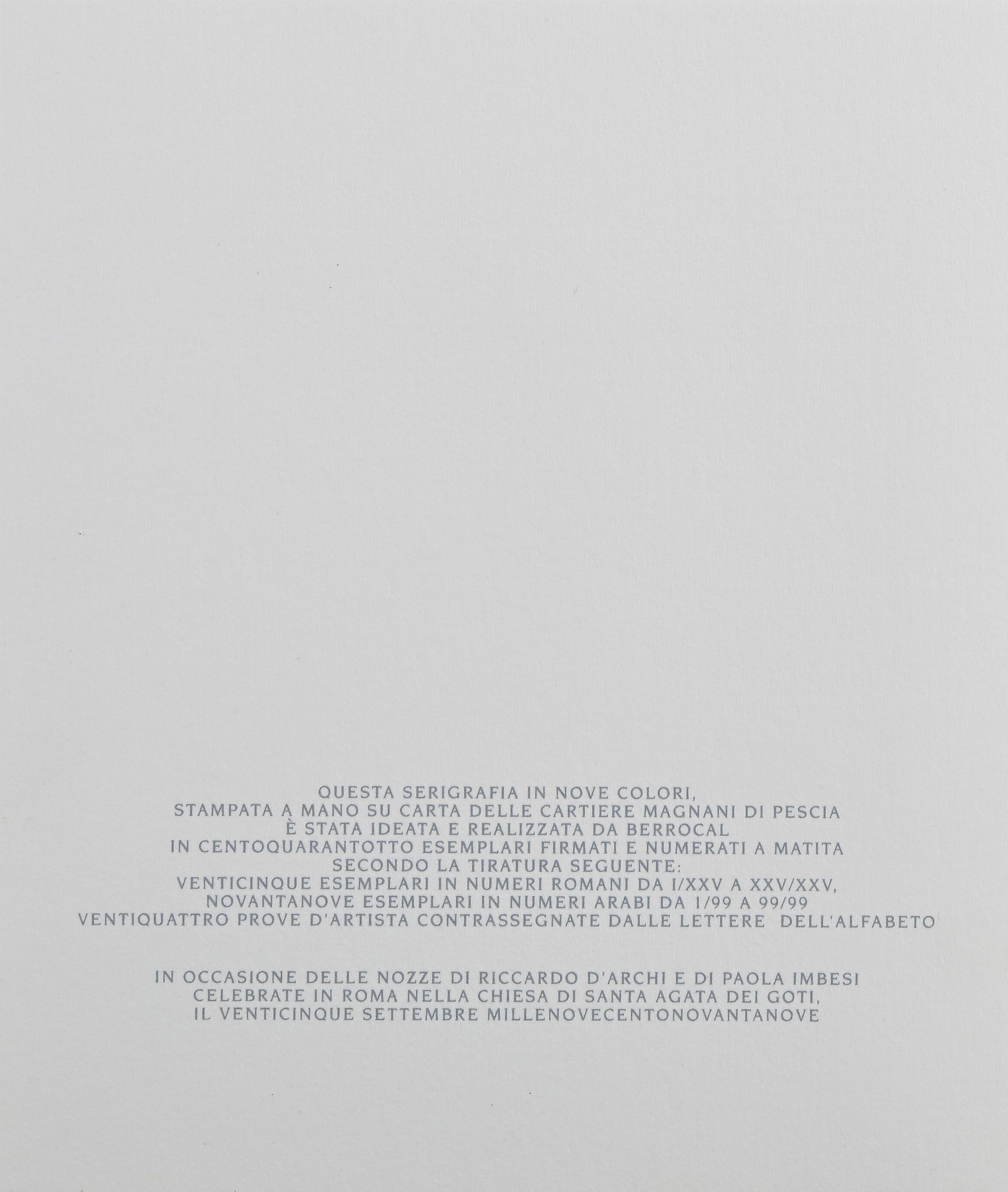 1999 Serigrafia di Miguel Berrocal realizzata come invito di nozze. Firmata e numerata Berrocal '99, 96/99.