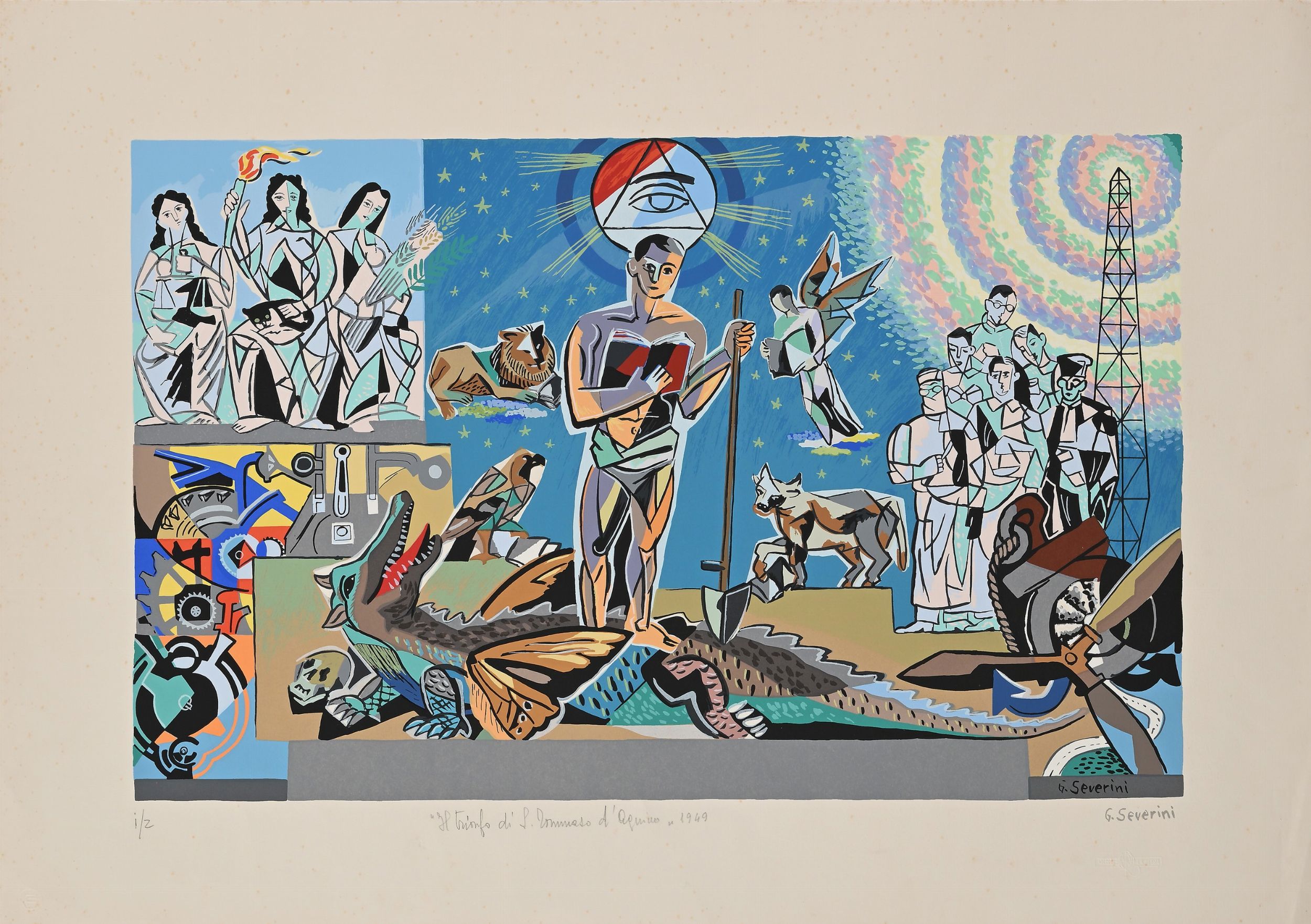 3) Il Trionfo di San Tommaso d'Aquino, 1949/198, numerata i/z, Al verso timbro dello stampatore e firma di Gina Severini Franchina