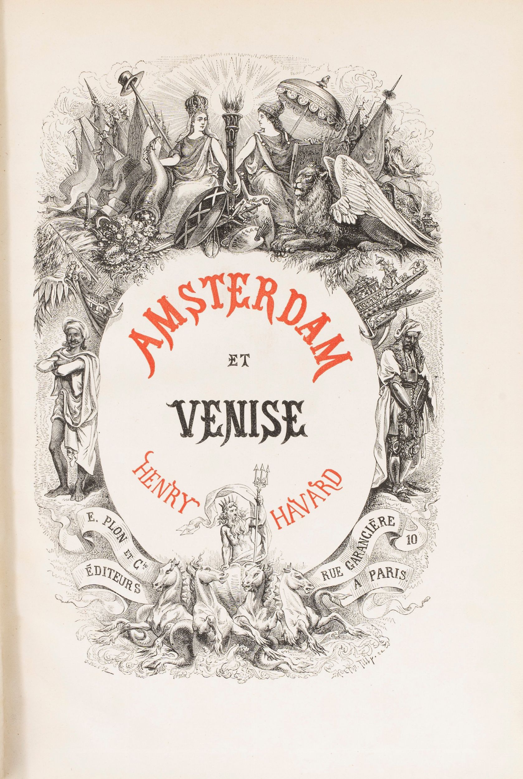 1876 Paris, E. Plon et Cie, 1876. In 4° grande, 278 x 188 mm. 7 acqueforti di Leopold Flameng e Gaucherel, 124 xilografie, frontespizio in rosso e nero, legatura coeva in chagrin rosso con titolo al dorso, lievi abrasioni.
