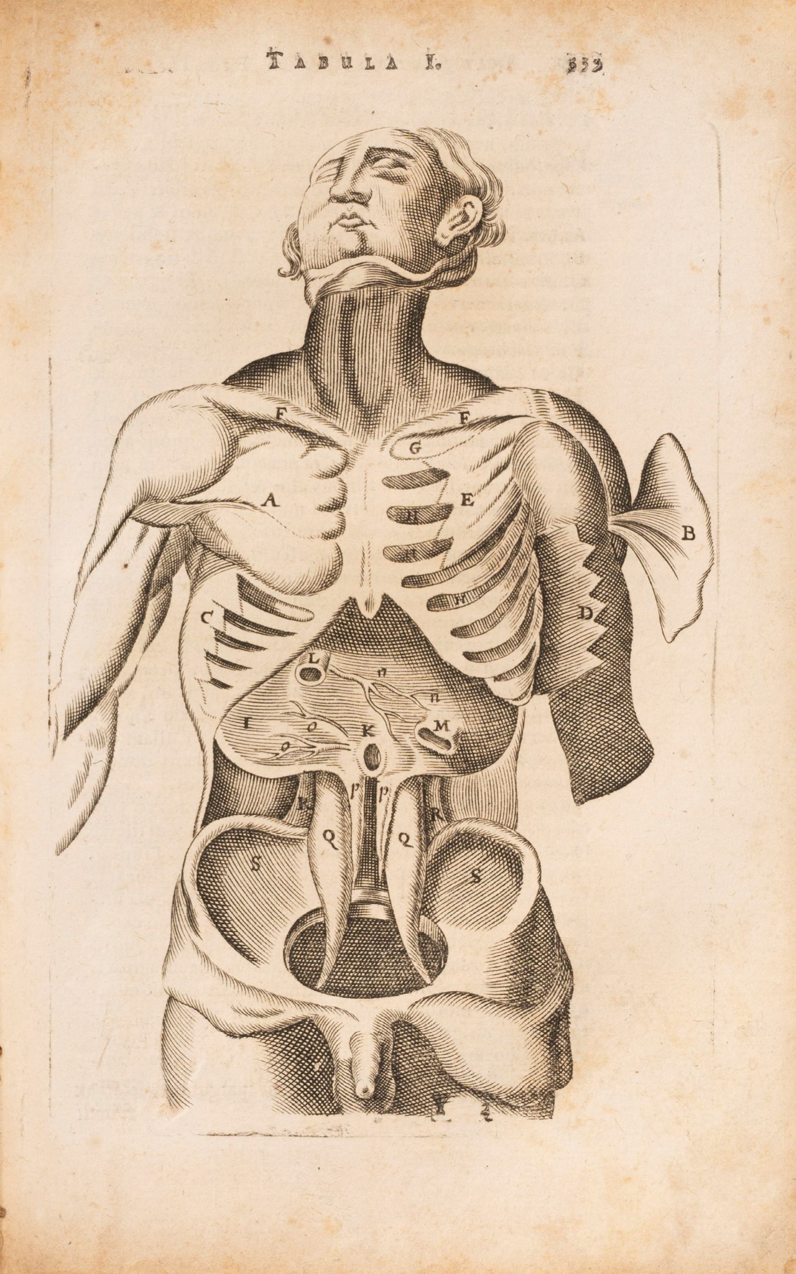 1684 Lione, Joan. Ant. Huguetan, 1684. In 8°. Antiporta calcografica, frontespizio stampato in rosso e nero cn vignetta incisa in rame, bel ritratto dell'autore, con numerose tavole incise in rame nel testo, di cui diverse ripiegate, leggere arrossature e fioriture, lavoro di tarlo al margine interno di pochi fascicoli, legatura coeva in pergamena, mancanze, difetti.