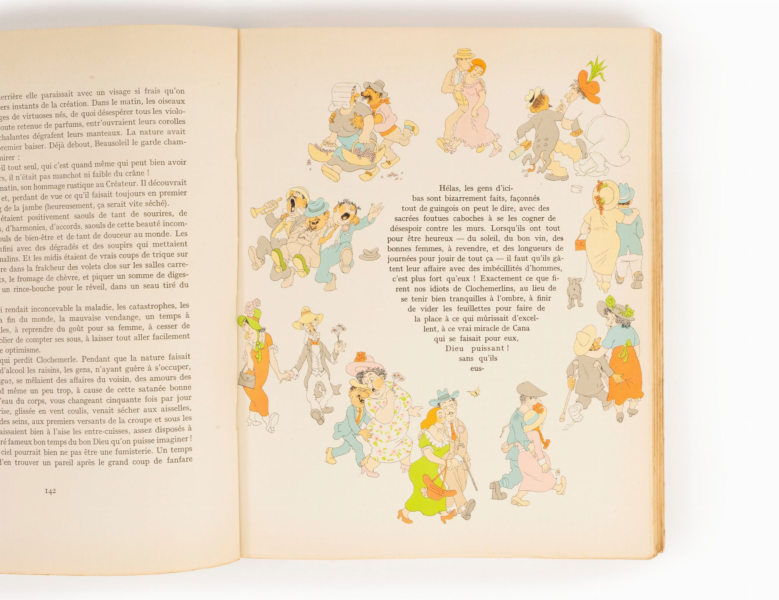 1934 Parigi, Flammarion, 1934. In-4° (283x220mm). Con numerose illustrazioni a colori di Dubout fuori e nel testo, fogli ancora chiusi, piccolo fori di tarlo alle prime carte, brossura editoriale a risvolti con illustrazione a colori e velina protettiva, piccoli fori di tarlo al piatto, lievissimi difetti.