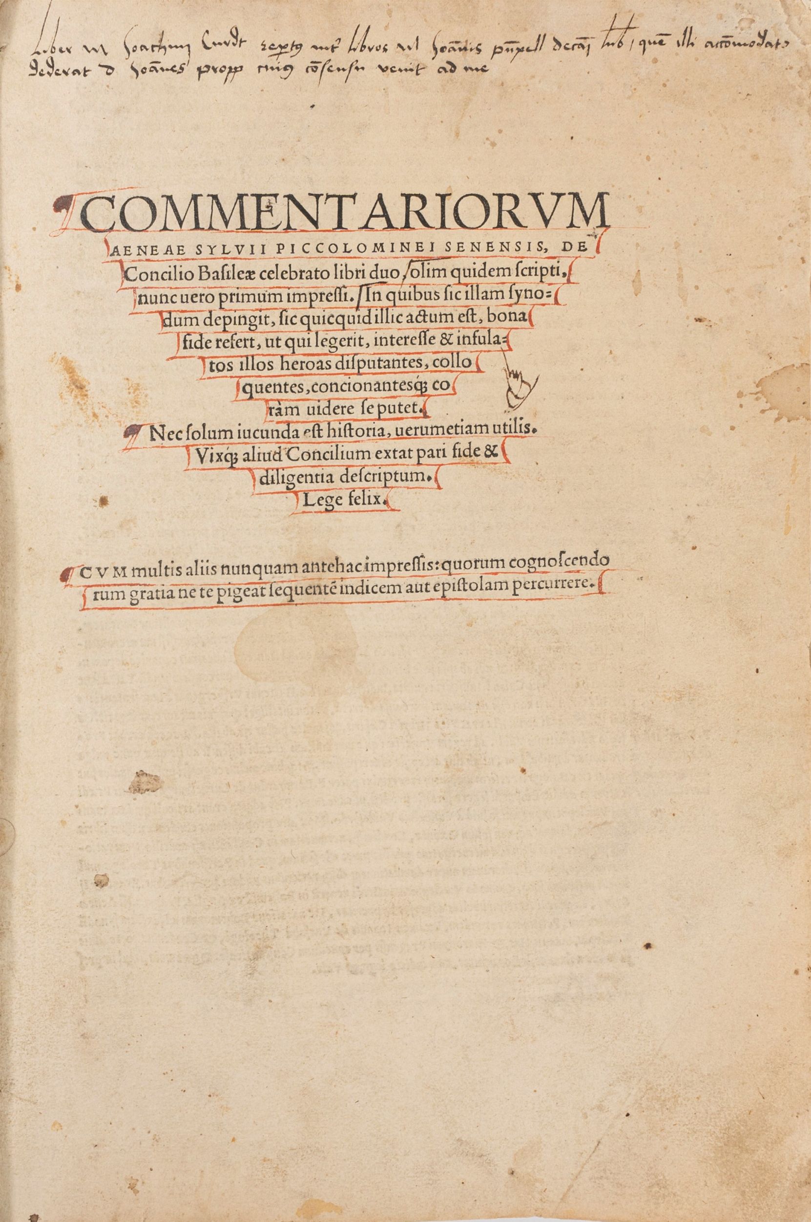 1535 s.l., s.e., s.d. [sec. XVI]. In 2°. Iniziali e fregi xilografici, numerosi interventi e postille di mano antica in inchiostro rosso e nero, al frontespizio piccola mancanza all'angolo superiore e qualche lieve macchia, margine superiore leggermente rifilato, rare e lievi fioriture, legatura coeva in pergamena, titolo manoscritto al dorso, unghie e tracce di lacci, alcune leggere macchie, lievi difetti. Al contropiatto posteriore nota manoscritta con data e luogo di acquisto: Madrid, 30 ottobre, 1705.