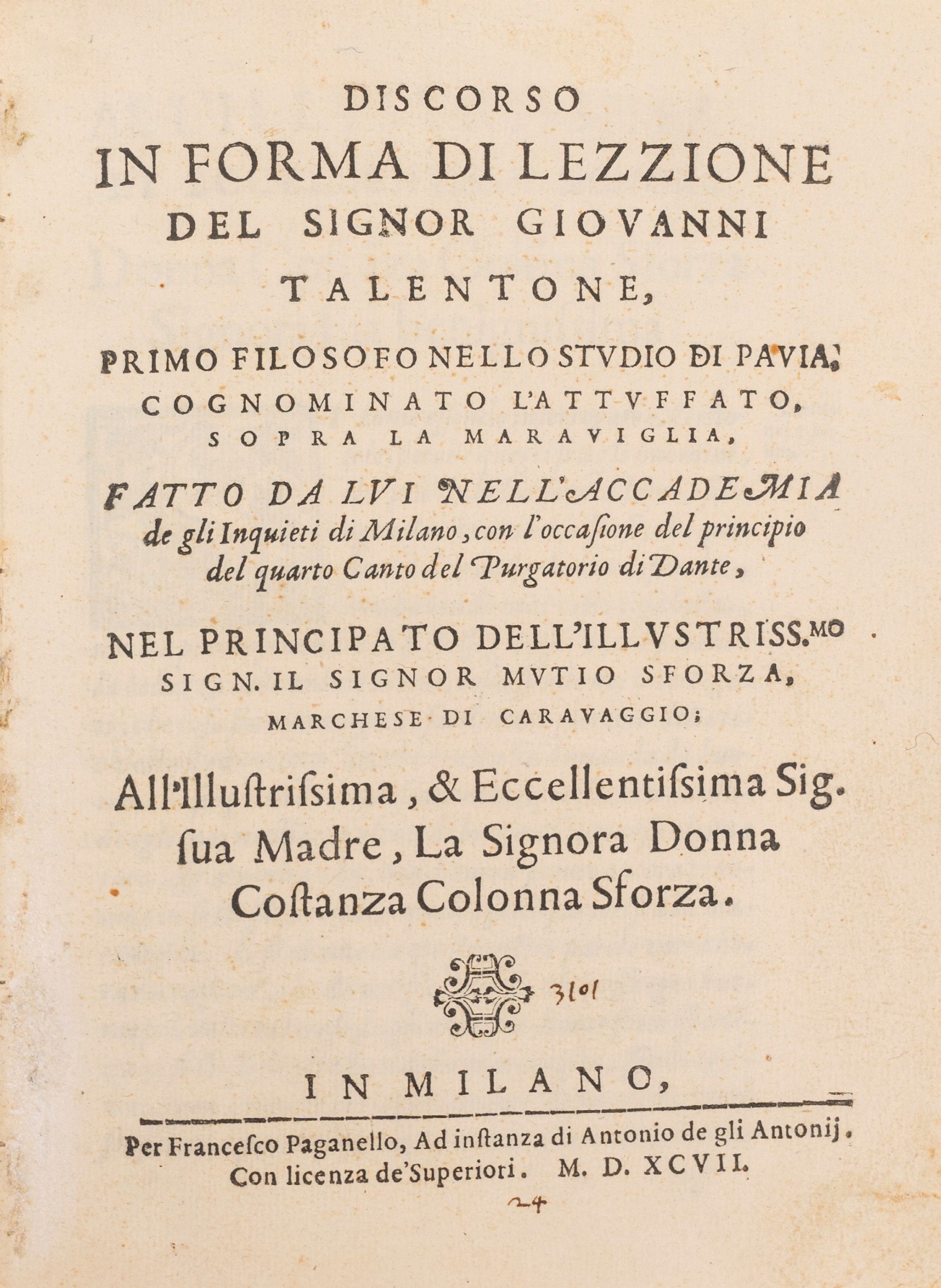 Discorso in forma di lezzione del signor Giouanni Talentone, primo filosofo nello [..]