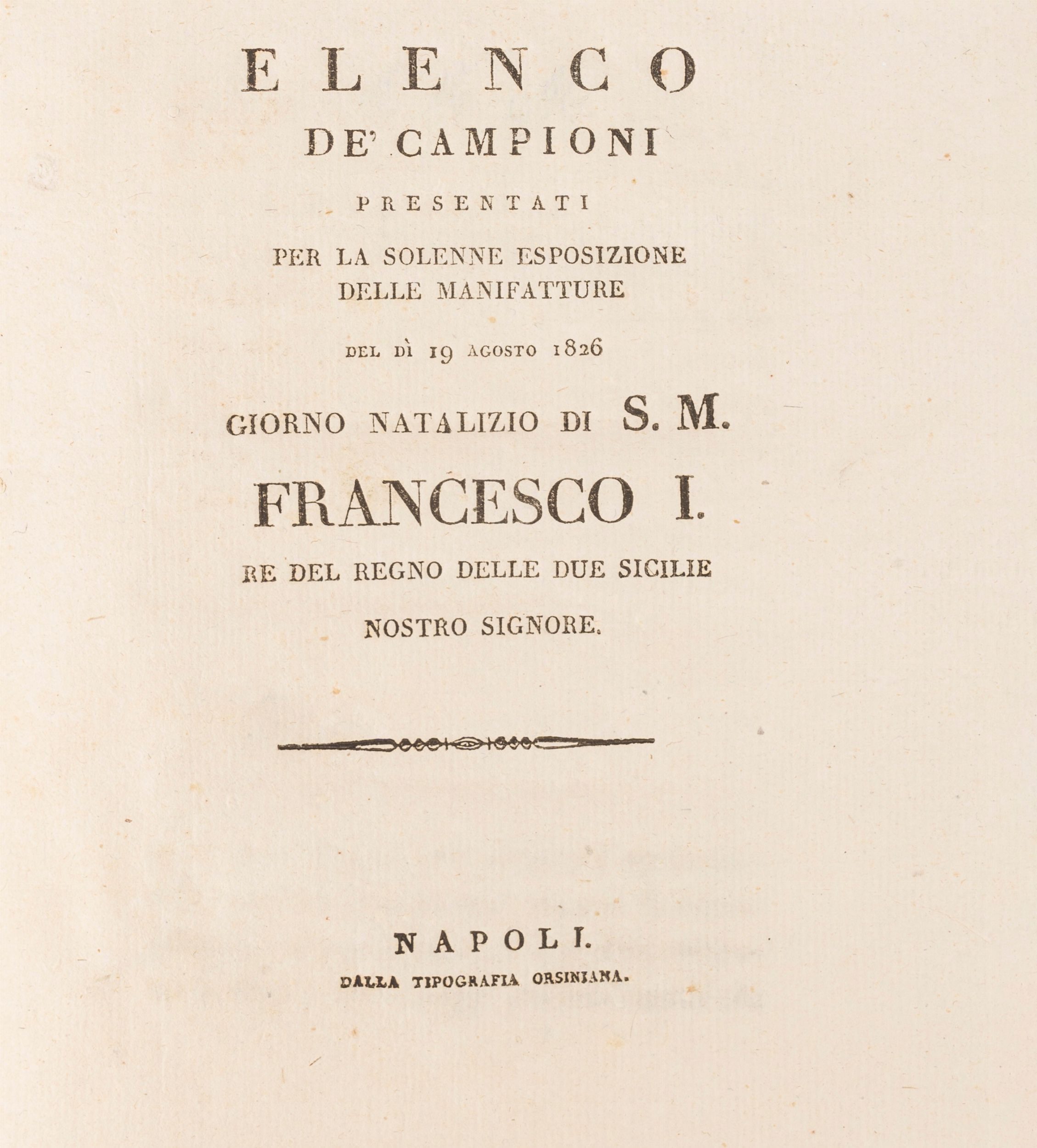 Elenco de' campioni presentati per la solenne Esposizione delle Manifatture del [..]