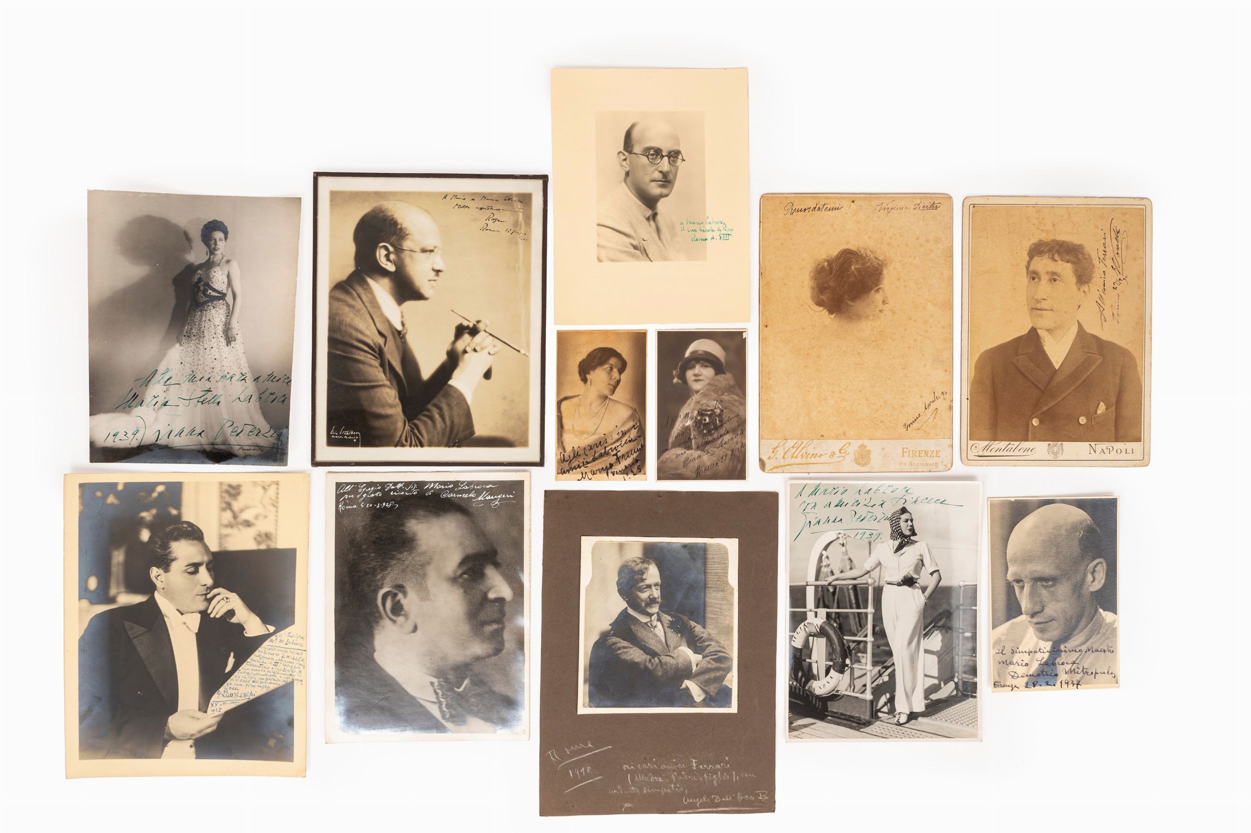 1939 Bell'insieme di 12 foto con dediche di attori e cantanti di primo Novecento, vari formati: Novelli, Virginia Reiter, Nicola Di Pirro, Angelo Dall'Oca Bianca, Lauri Volpi, Gianna Pederzini (2 foto), Demetrio Mitropoulos, Bianca Scacciati, Carmelo Maugeri etc.