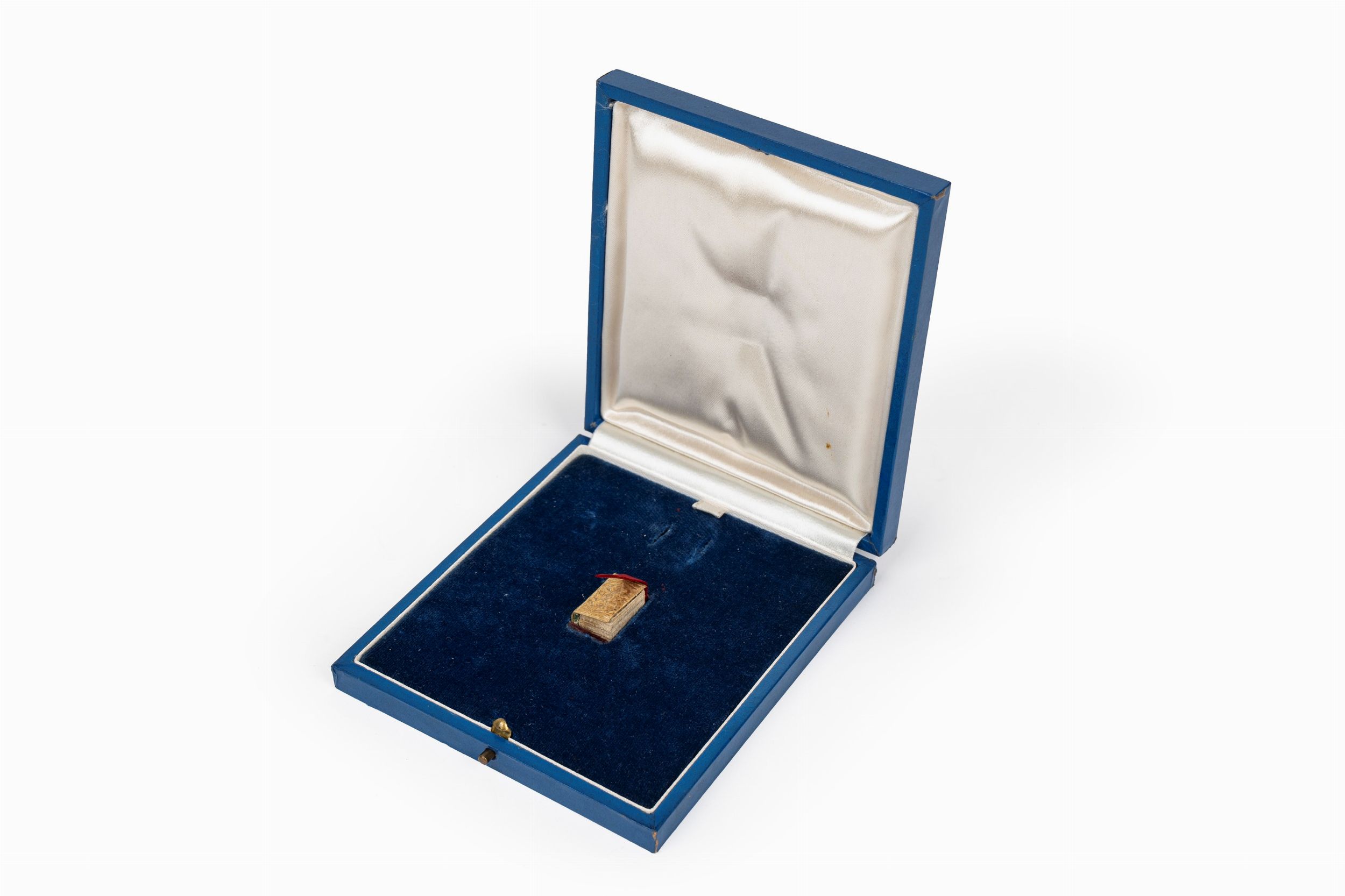 1896 Padova, Tipogr. Salmin, 1896. 18 x 11 mm. Ritratto al frontespizio, 208 pagine, ogni pagina contiene 9 righe e ciascuna di esse conta al massimo tre parole, legatura in pergamena con impressioni in oro ai piatti e nome dell'autore al dorso. Al colophon: 'stampato coi caratteri del Dantino onde superare qualsiasi altra minuscola edizione, Maggio 1897'. Conservato entro box blu.
