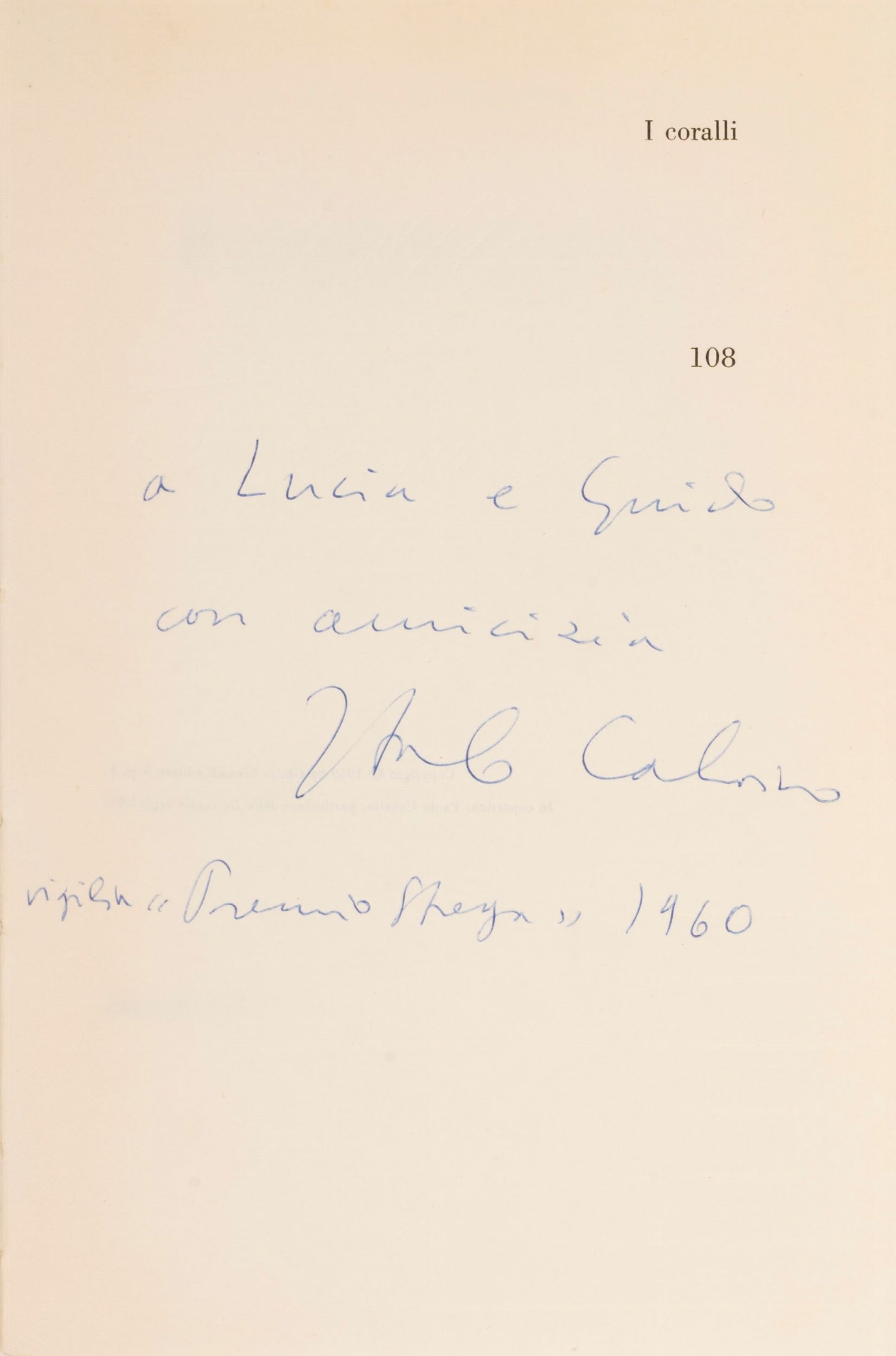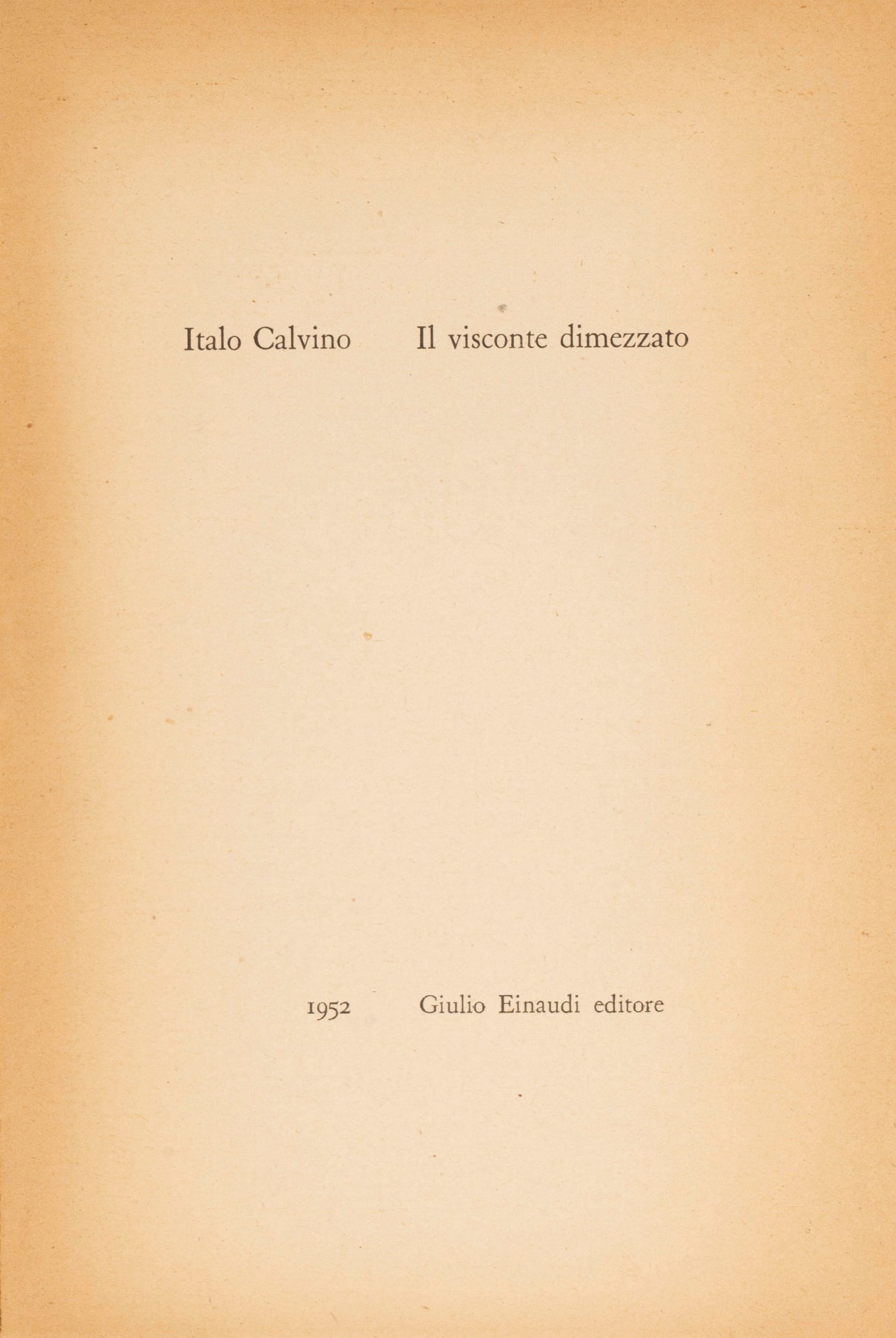 1960 Torino, Einaudi, 1959. Legatura editoriale con dorso in tela e cartoncino rigido illustrato con un disegno a colori di Paolo Uccello, mancante la sovraccoperta. Dedica di Calvino datata 1960. § Insieme Il Barone Rampante , Torino, Einaudi, 1957 e Il Visconte dimezzato , Torino, Einaudi, 1952.