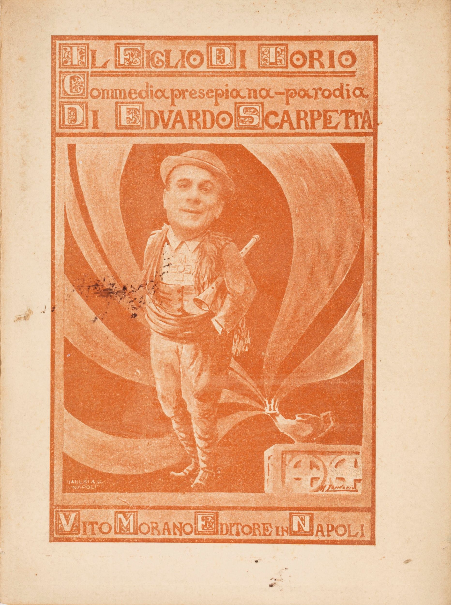 1904 Napoli, Vito Morano, s.d. (1904). In 8° piccolo. Brossura editoriale. Frontespizi disegnati da Marco Landonio e incisi in xilografia da Danesi. Leggera brunitura nei margini, piccolo strappo con mancanza al frontespizio.