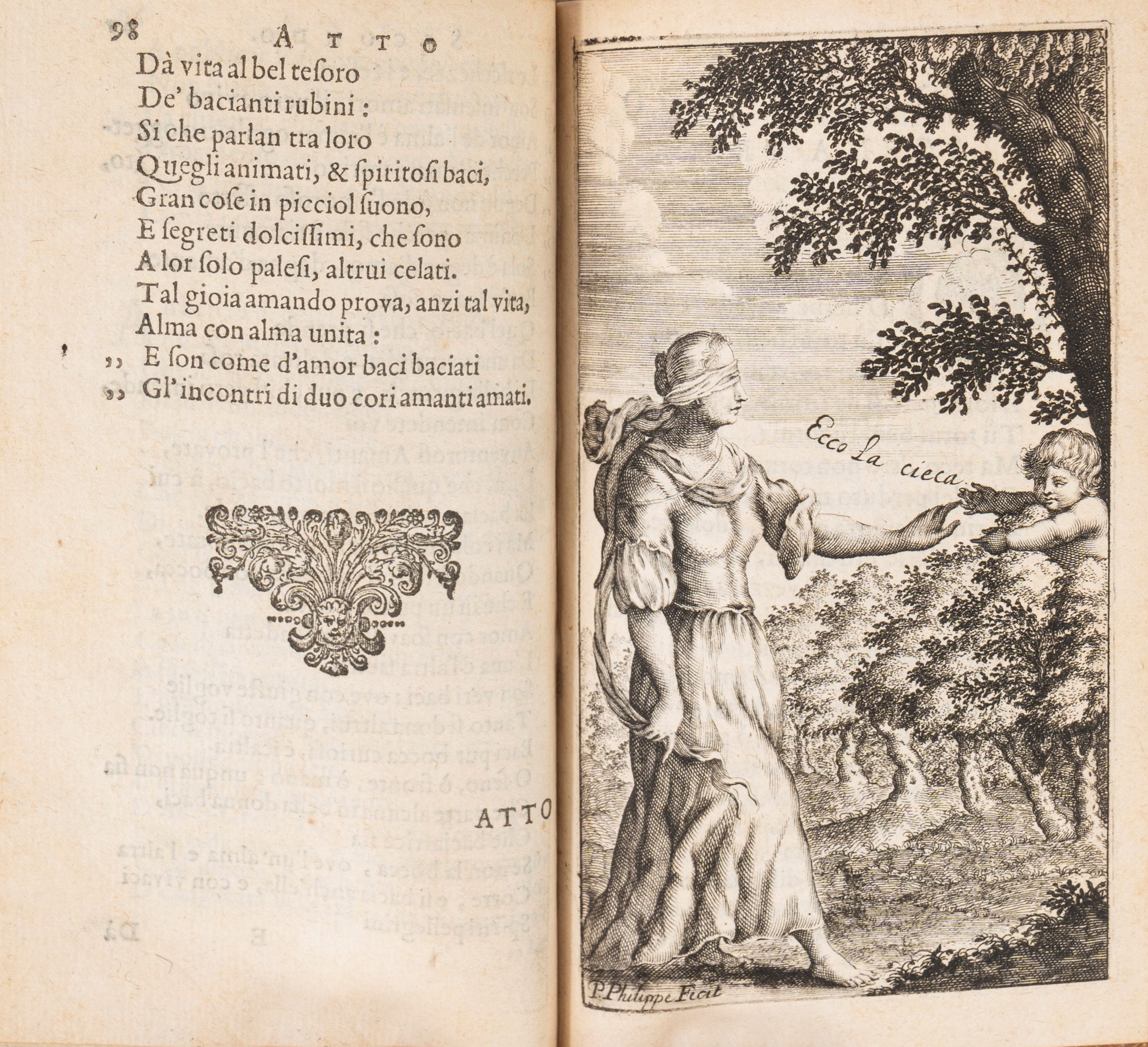1659 Leyda, Elzevier, 1659. In 24°, 128 x 78 mm. Frontespizio e 6 acqueforti incise a piena pagina fuori testo di Pierre Philippe, testatine e finalini incisi, perfetto esemplare, raffinata legatura da amatore in vitello biondo con doppia cornice a filetti d'oro ai piatti e dorso a cinque nervi con titolo e decorazioni in oro, dentelle, tagli dorati.