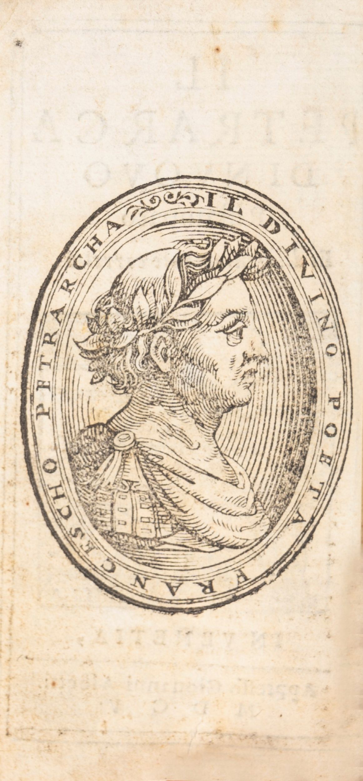 1605 Venezia, appresso Giovanni Alberti, 1605. In 24° lungo, 321, [13] p. , 95 x 50 mm. Frontespizio con marca raffigurante la Sibilla seduta con in mano il libro dei Vaticini e braccio destro alzato, in basso a destra in maiuscolo il nome Sibilla, al verso ritratto di Petrarca laureato di profilo entro ovale, solita censura del sonetto 92 sull'Avara Babilonia, ottimo esemplare nella sua legatura d'amatore del sec.XIX in piena pelle rossa con decorazioni in oro ai piatti e al dorso.