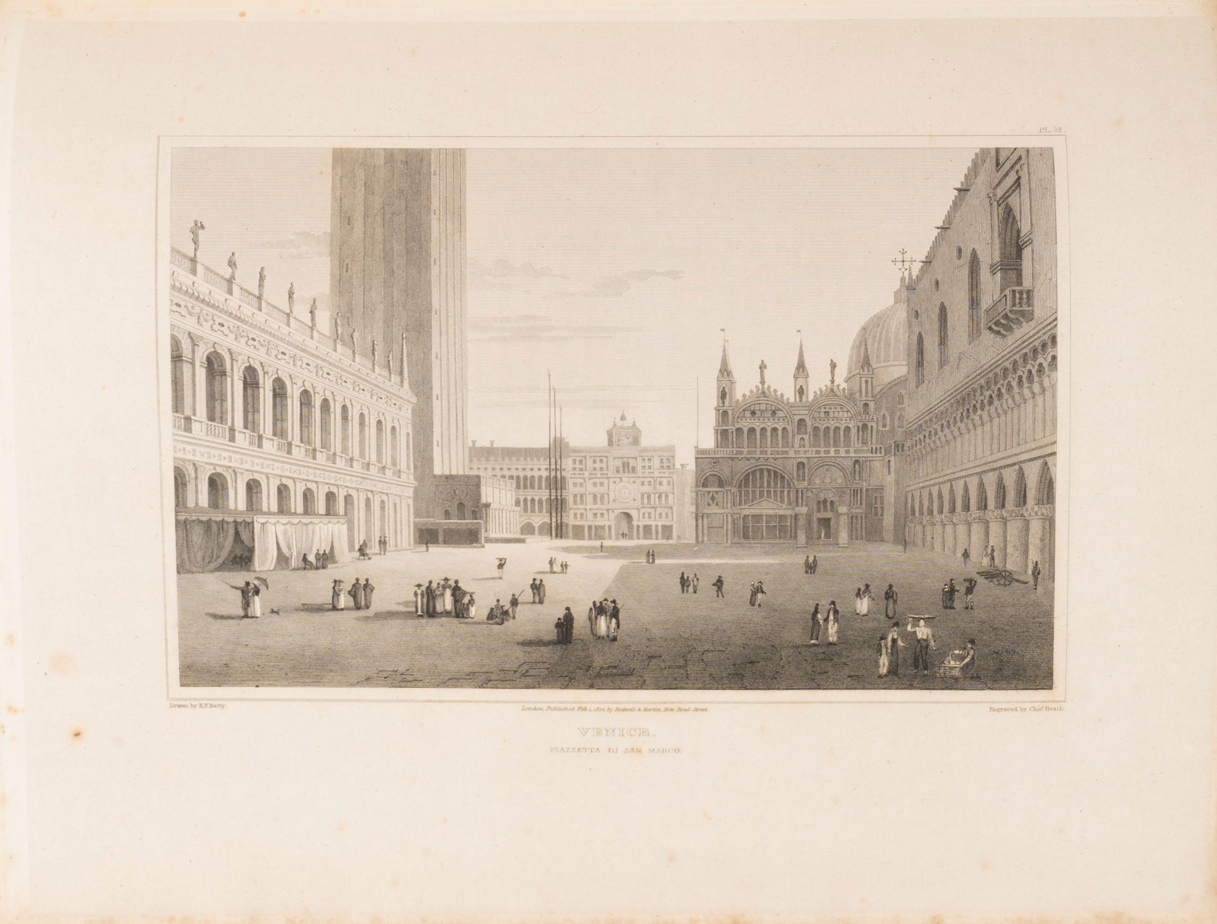 1820 London, Rodwell, 1820. In Folio (cm. 23,5 x 30,5). Con 60 magnifiche tavole f.t. incise in acciaio (su disegno della stessa Batty, nota paesaggista inglese) di vedute di città , paesaggi e luoghi caratteristici della nostra penisola, lievi difetti, legatura coeva mz. pelle, cordoni, titolo in oro e fregi a secco al dorso, qualche leggera spellatura, Firma di appartenenza alla carta di guardia.