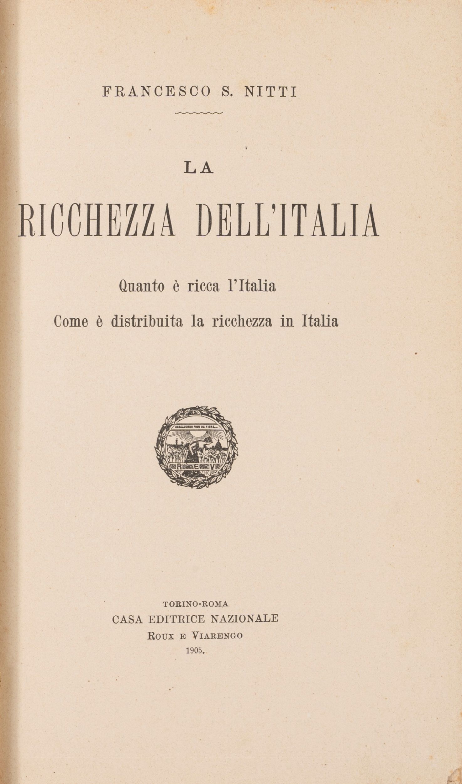 1905 Torino, Roux e Viarengo, 1905. In 8°, con una tabella fuori testo. Legatura in mezzo marocchino con angoli, cordoni, titolo e fregi in oro al dorso. Conservate le copertine originali che presentano qualche strappo ai margini e lievi fioriture.