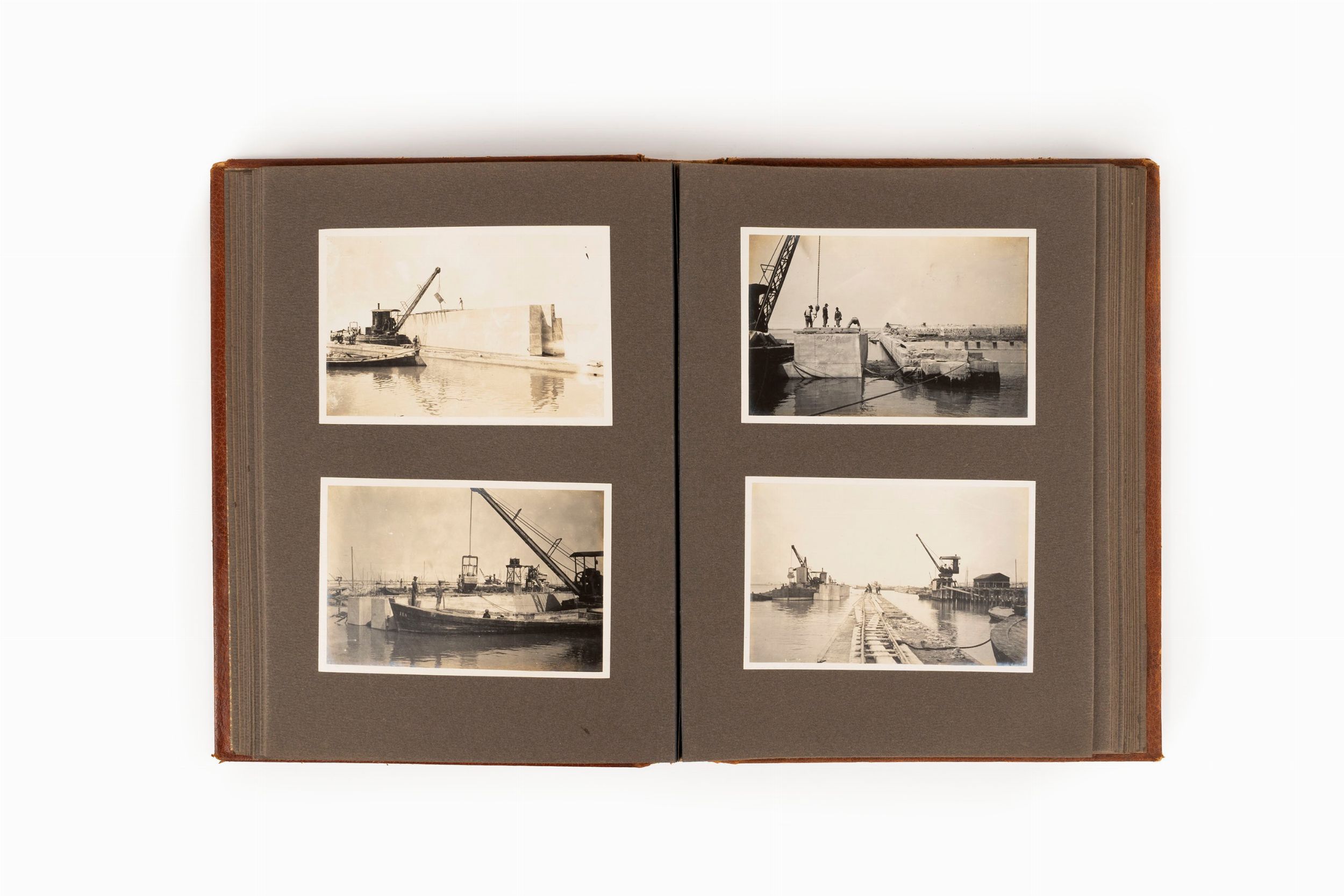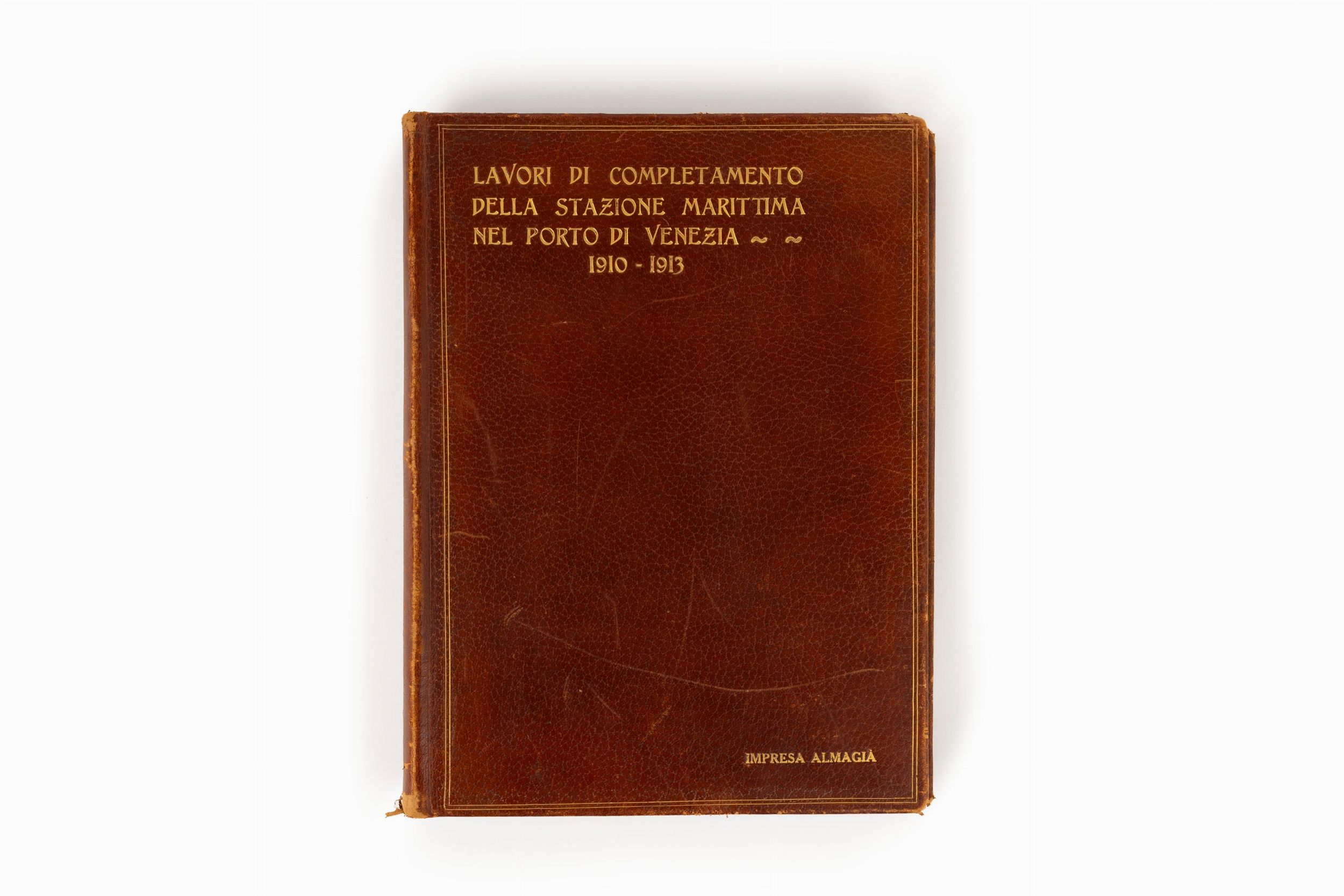 1910 Album fotografico contenente 98 foto (cm 11 x 17) applicate su cartoncino, lievi difetti, legatura in piena pelle con titolo impresso in oro al piatto entro cornice, in basso a destra l'impressione 'Impresa Almagià ', ditta che ha realizzato la stazione, qualche graffio e abrasione, in particolare al dorso.