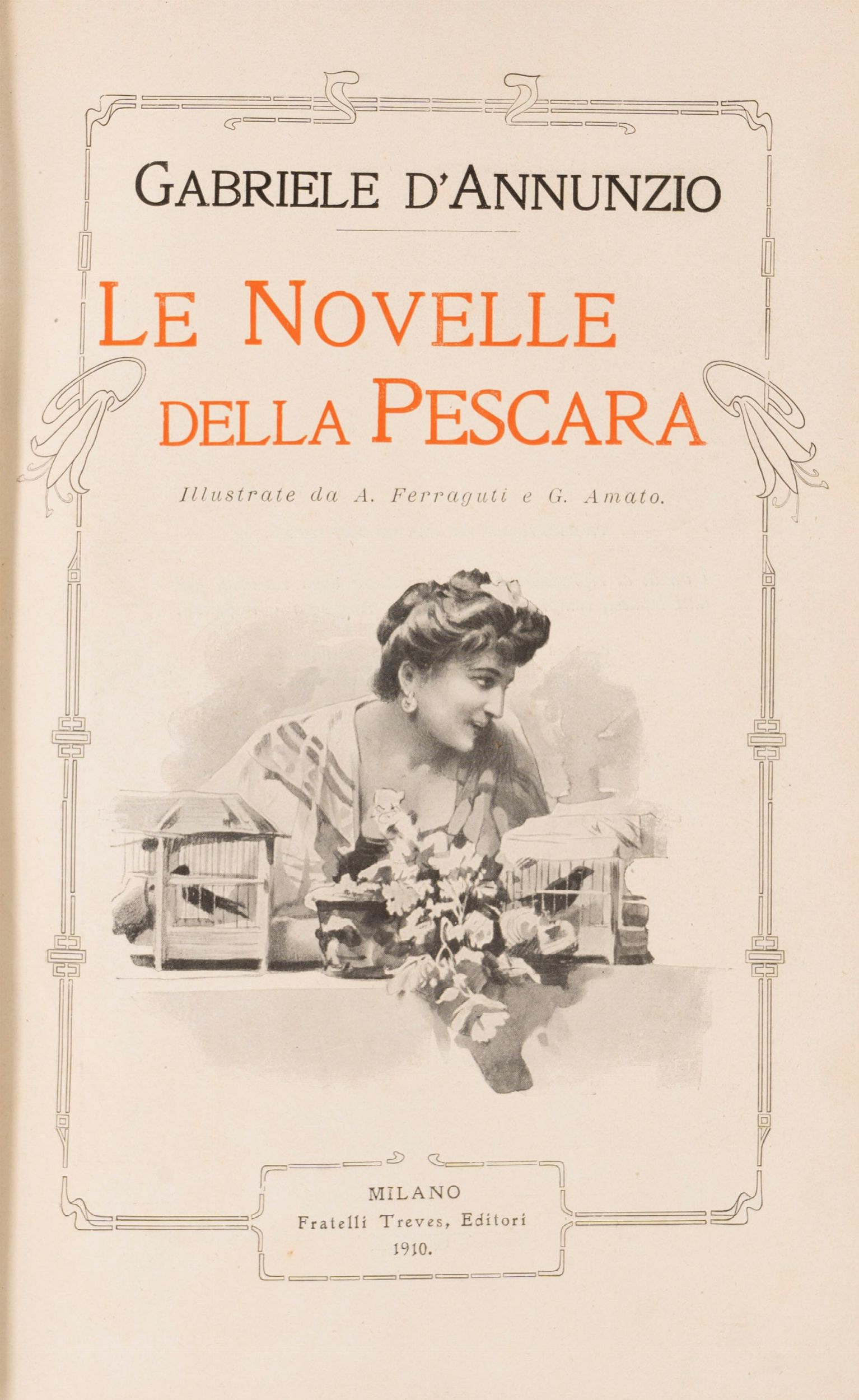 1910 Milano, Fratelli Treves, 1910. In 8°. Legatura recente in mezza pelle rossa con angoli, lievi danni alle cerniere, mancante la brossura originale. Titolo impresso in oro al dorso, illustrato con tavole nel testo e fuori testo, frontespizio tipografico in caratteri rossi e neri.