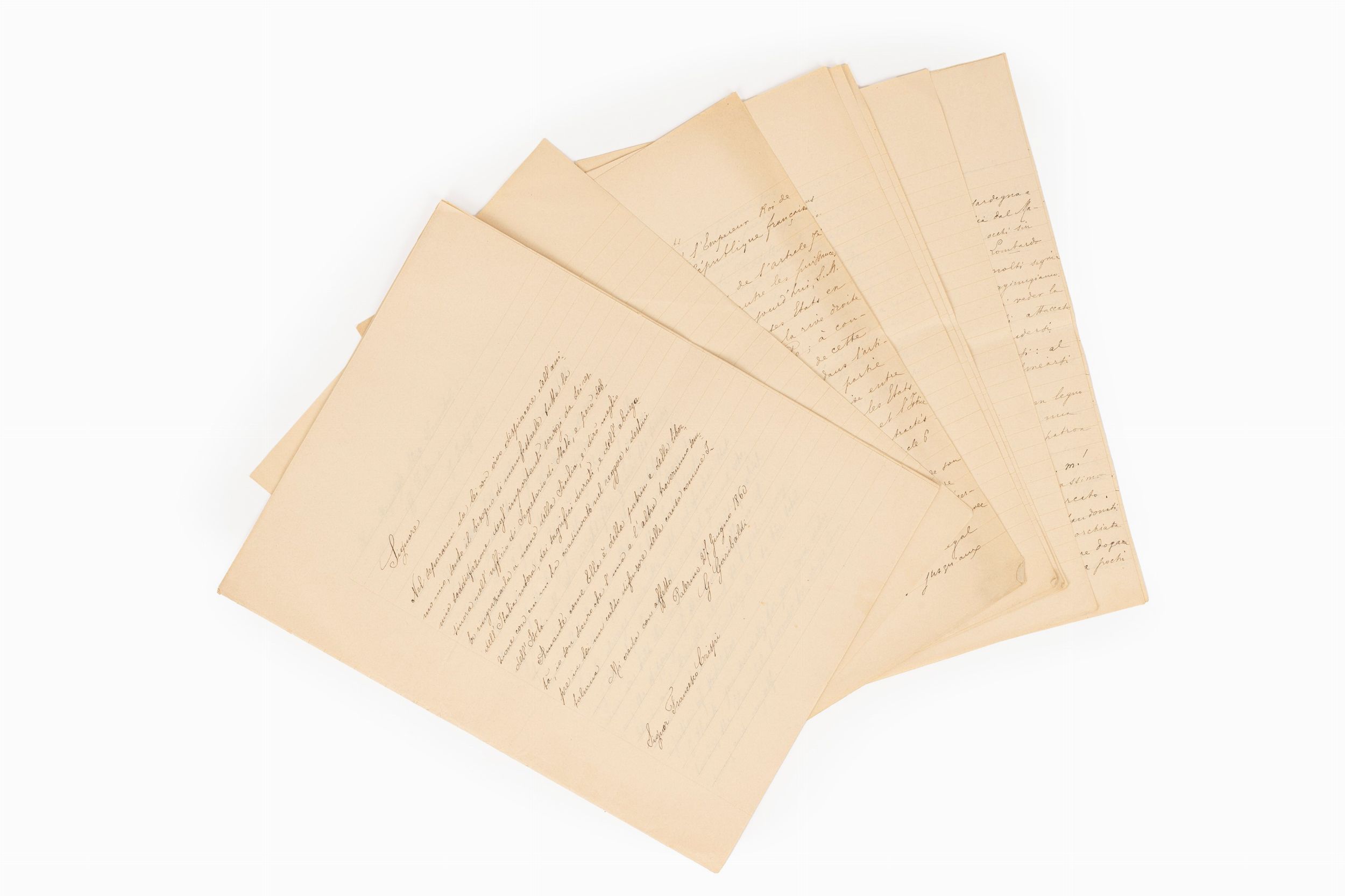 1930 Curioso insieme di trascrizioni di lettere e documenti risorgimentali, tra cui un gruppo di lettere di Garibaldi, alcune di Mazzini, di Napoleone etc. Su fogli protocollo 275 x 215 mm., in totale 25 pp.
