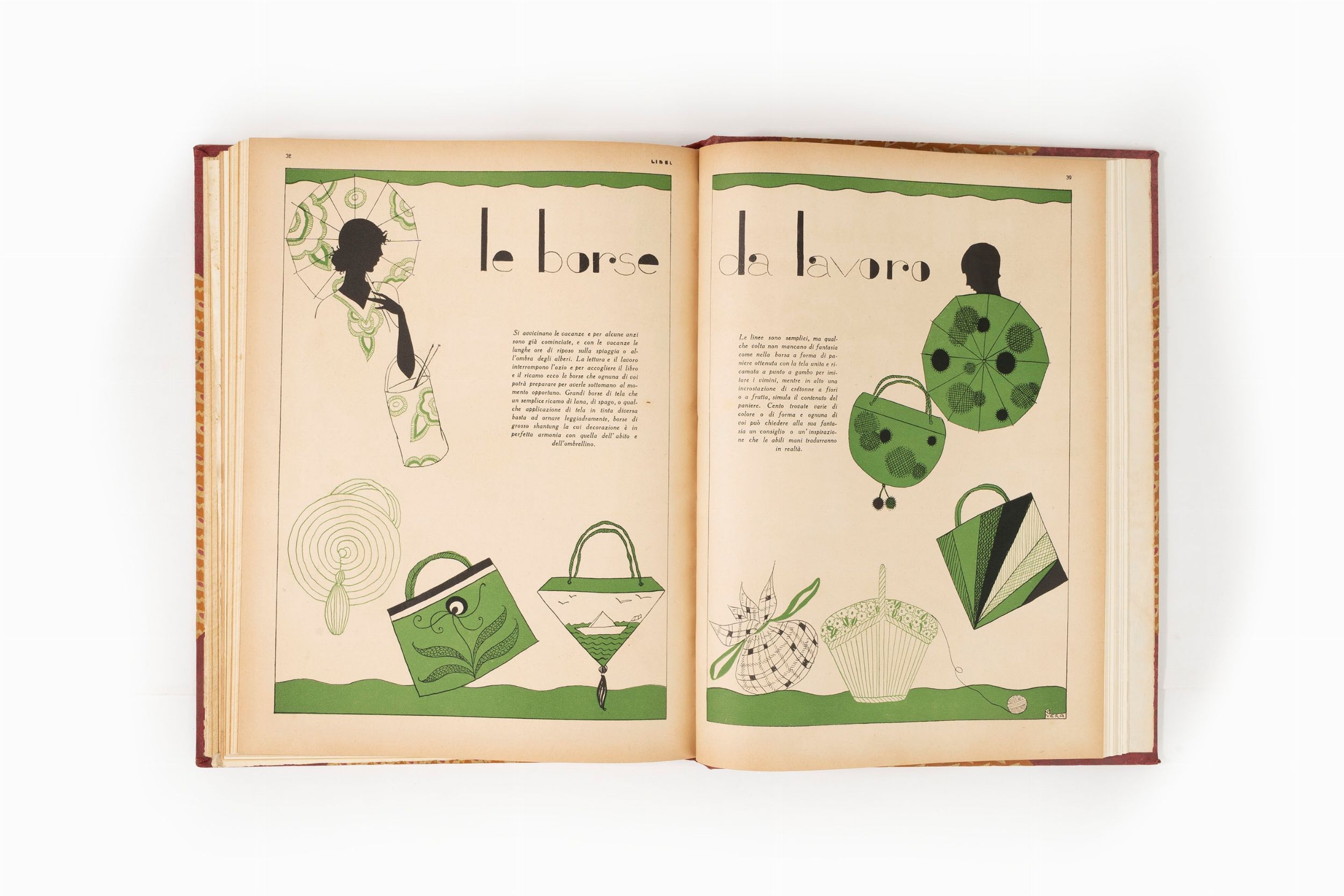 1929 Milano, Edizioni S.A.P.E.R.E., 1929-30. In folio. 5 volumi. Numerose illustrazioni a colori ed in bianco e nero, su carte lucide, fioriture sparse, legature posteriori in tela rossa, ai piatti carta colorata in bianco e rosso, abrasioni.