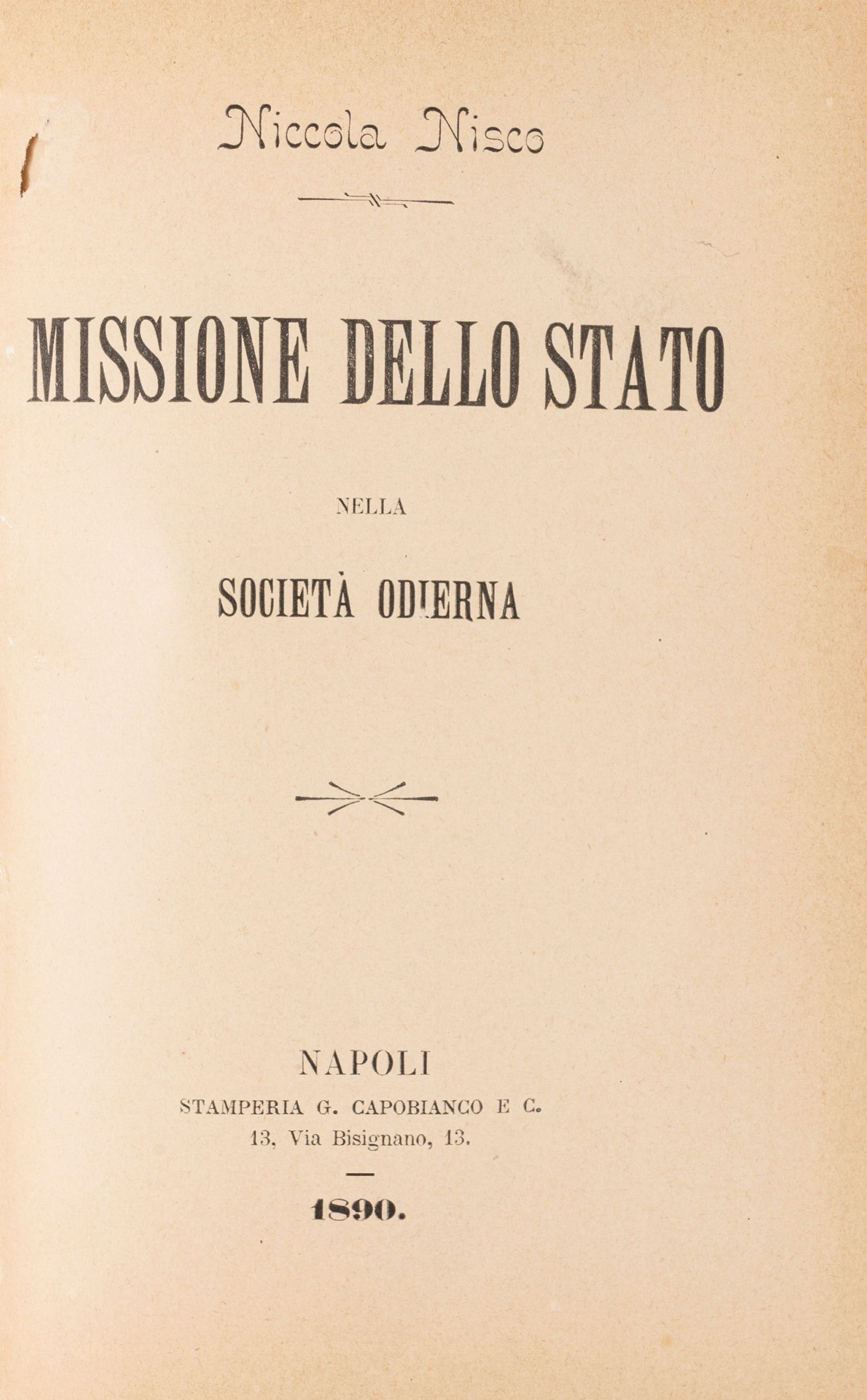 Nicola Nisco : Missione dello stato nella società odierna.  - Asta Libri, Autografi e Stampe - Associazione Nazionale - Case d'Asta italiane