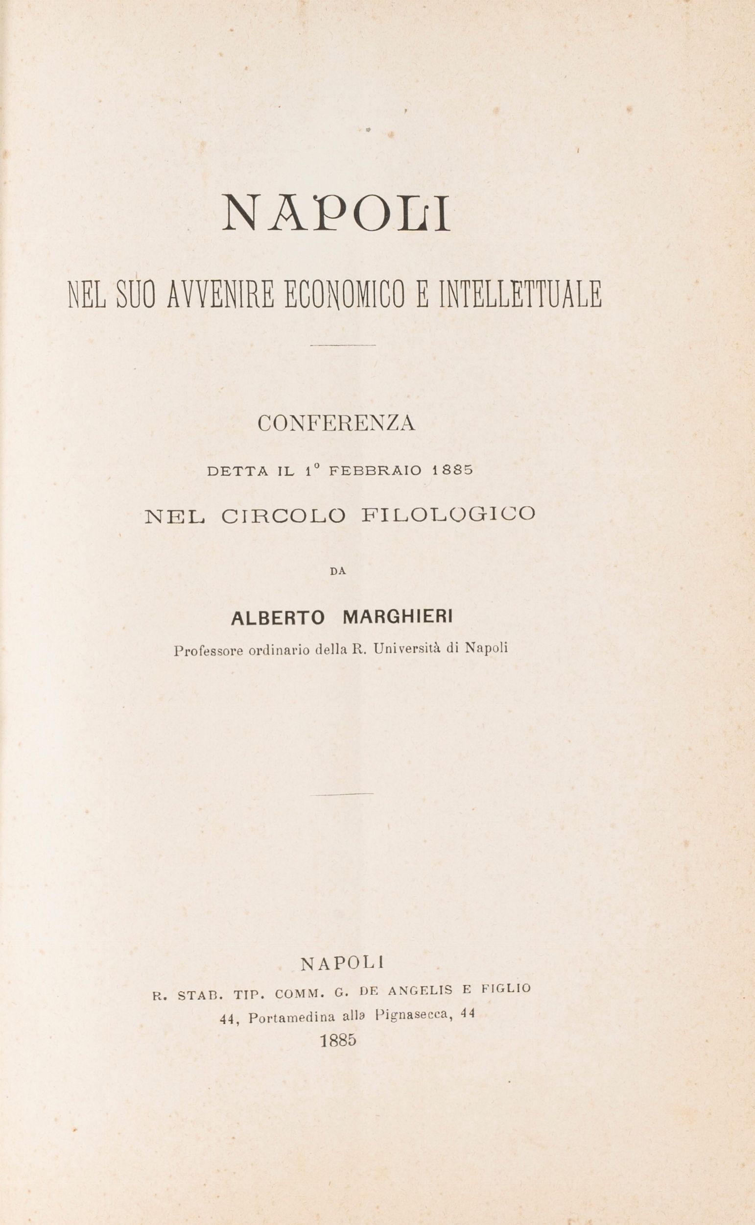 1885 Napoli, De Angelis, 1885. In 8°. Legatura in mezza pelle, titolo e fregi in oro al dorso, copertine originali conservate.
